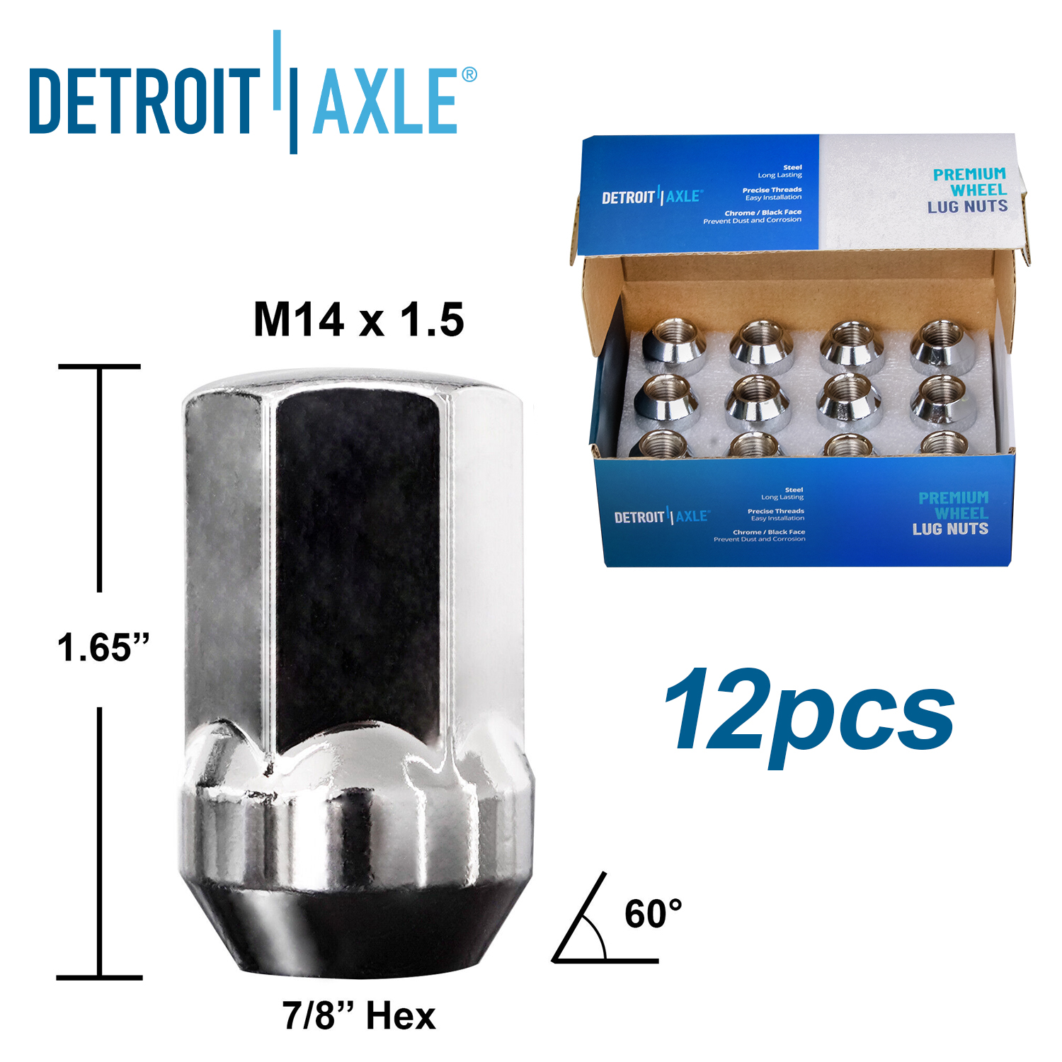 Detroit Axle wheel lug nut is your best choice for aftermarket lug nuts. Made of premium cold-forged and heat treated steel, our lug nuts have high strength and durability and provide reliable replacement. With advanced forging treatment, precisely machined threads ensure a perfect fit on your vehicle’s wheel studs. Chrome plated wheel nuts have a long lasting high luster finish, black chrome finished lug nuts have a deep reflective look, which achieves an excellent appearance while ensuring safe driving. Detroit Axle wheel & tire lug nuts are manufactured in strict accordance with OEM standards and with high corrosion resistance to prevent rust in any environment.