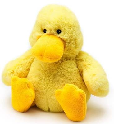 DUCK JUNIOR WARMIES Cozy Plush Heatable Lavender Scented Stuffed Animal A novel collection of fully microwavable soft toys, Warmie Juniors? are an attractive colorful range available in a variety of different styles and fabrics. Warmnies make the perfect bed time companion and are gently scented with lavender for a perfect nights sleep. Follow the directions and pop them in the microwave to make them warm, cuddly and softly fragranced with lavender. About 6 to 8 inches tall About 0.5 pounds Suitable for children 3 and over. Fully microwavable plush soft toy Manufactured using only the highest quality super soft fabrics Filled with specially treated millet grains and dried lavender flower Wipe with damp cloth to clean Can also be used as a cold pack by simply placing in a plastic bag and putting it in the freezerDUCK JUNIOR WARMIES Cozy Plush Heatable Lavender Scented Stuffed Animal