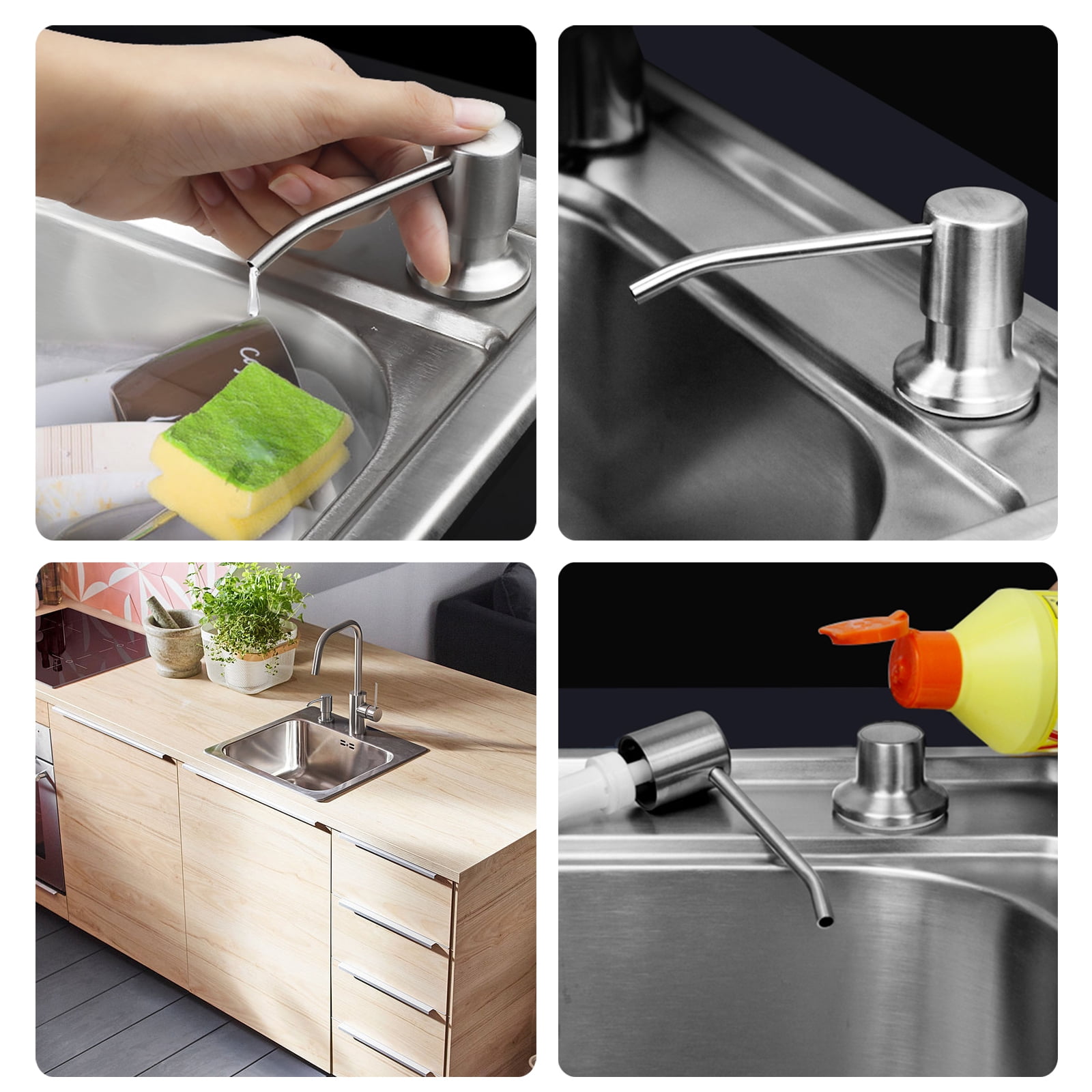 EEEkit Kitchen soap dispenser is made of ABS+stainless steel, strong, acid-resistance, corrosion-resistance, durable. This liquid soap dispenser with a 3.1oz capacity, is perfect for liquid soap, liquid detergent or lotion, etc, large capacity allows you to fill it infrequently. It can 360° free rotation, is easy to clean, and doesn’t jam when pressing, no need to take the bottle out under the sink, just pull out the soap dispenser pump head and refill it, no more crawling under the sink. This built-in design sink soap dispenser is suitable for any type of sink, it only takes a few minutes to install. For reducing germs to prevent common sicknesses or diseases, a hand soap dispenser will help a lot, essential oil & lotion & liquid dish soap & shampoo & shower gel, or even hand lotion can fill it up. Our soap dispenser is ideal for the kitchen, bathroom, or hotel.