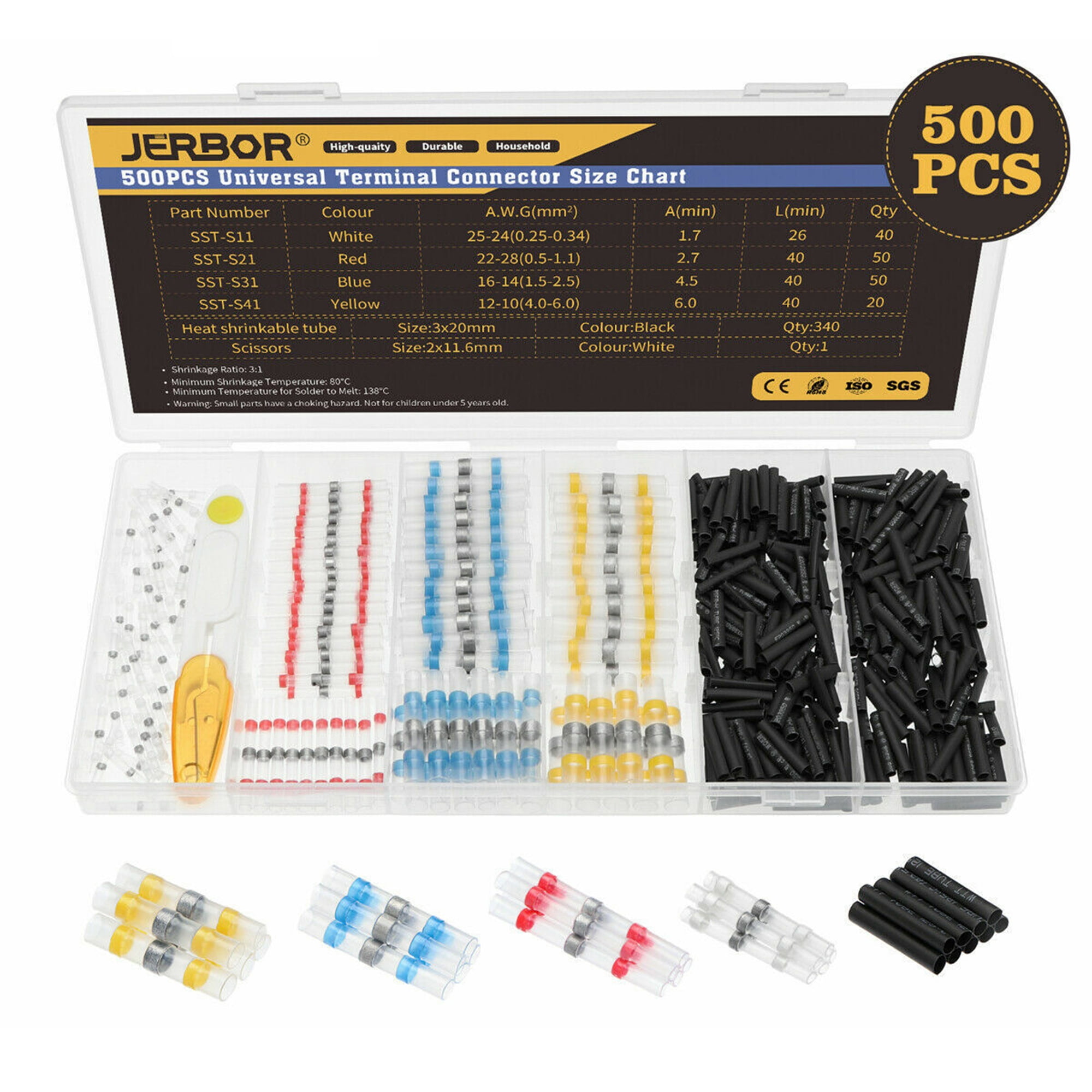 Electrapick 500PCS Universal Terminal Connector Set,Solder Seal Sleeve Solder Wire Connectors Heat Shrink Butt Terminals IP67 W/ Scissors