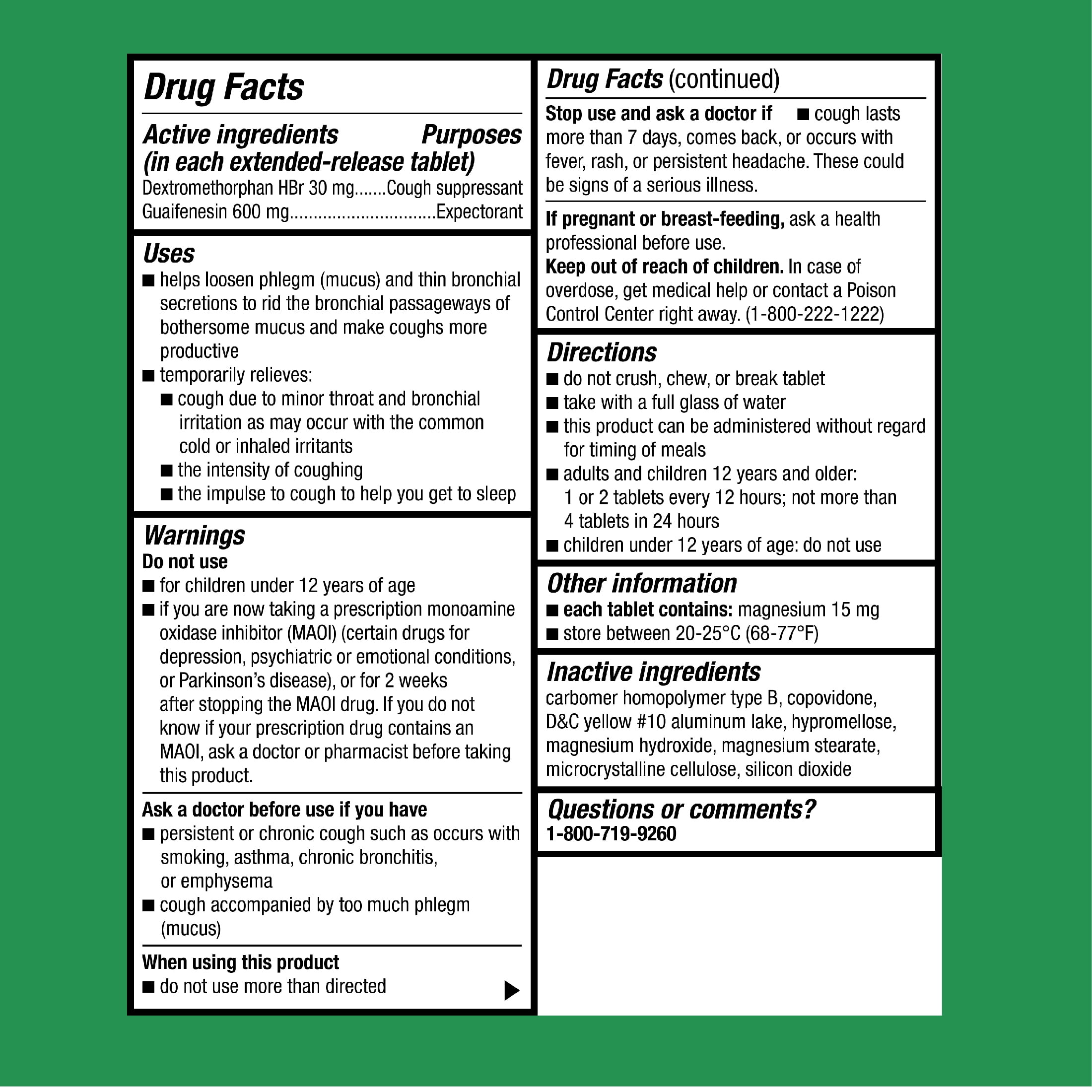 - ACTIVE INGREDIENTS: This product contains Dextromethorphan HBr 30 mg (a cough suppressant) and Guaifenesin 600 mg (an expectorant), which compare to the active ingredients in Mucinex DM.
