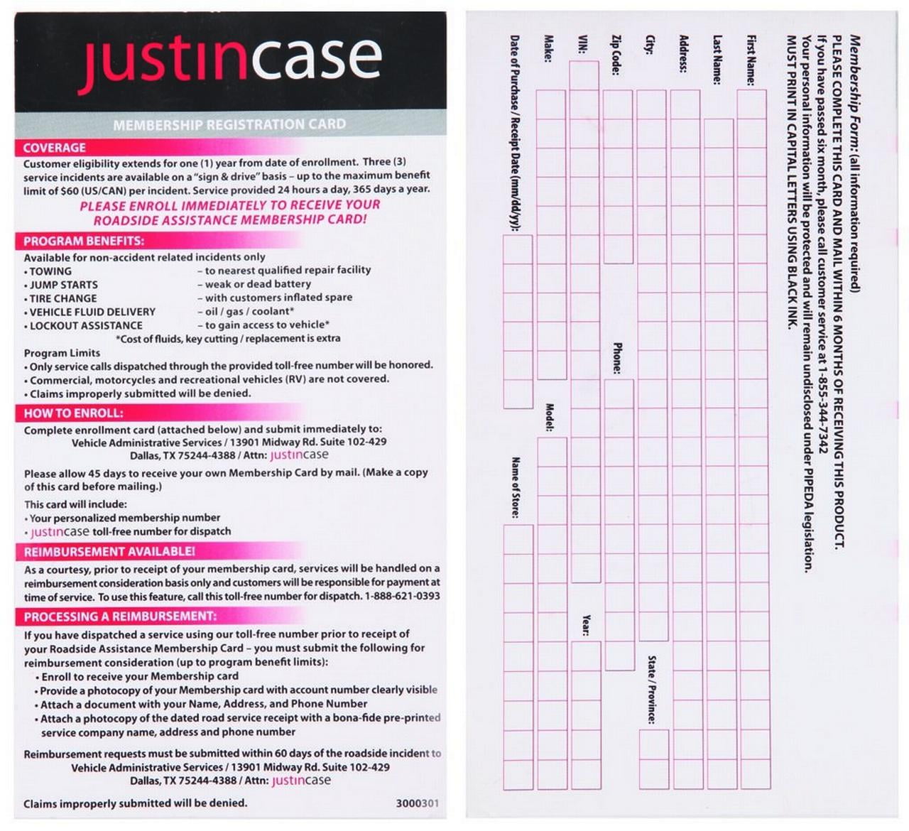 EverStart Travel Pro Auto Safety Kit Includes 365-Day Roadside Assistance. This Roadside Assistance program included in this kit is the most comprehensive in the industry. There are no fee and all you have to do is register. Then you have 365 days of 24 hours service and protection. This makes the EverStart safety kit the perfect travel companion and an amazing gift for everyone with a car. 365 Days of Roadside Assistance Booster Cable 8ft 10 gauge Tow Strap 12ft, 4,500 lbs, Flashlight/Lantern with AAA batteries Rain Poncho 1 Pair of emergency gloves SOS banner First Aid Kit (10 adhesive strips, 5 adhesive snips, First Aid Instruction Card, 2 Gauze Pads, 1 Towelette) Perfect gift for: teenagers, high school students, college students, new car drivers, wife, husband, grandkids, grandchildren, co-workers, employees, appreciation awards, raffles, holidays, fathers day, mothers days, Christmas, commuters, road trippers and much more.