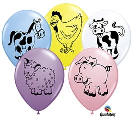 Farm Animals Pink, Blue, Yellow, Purple, and White 11Inch Latex Balloons 12 Pack