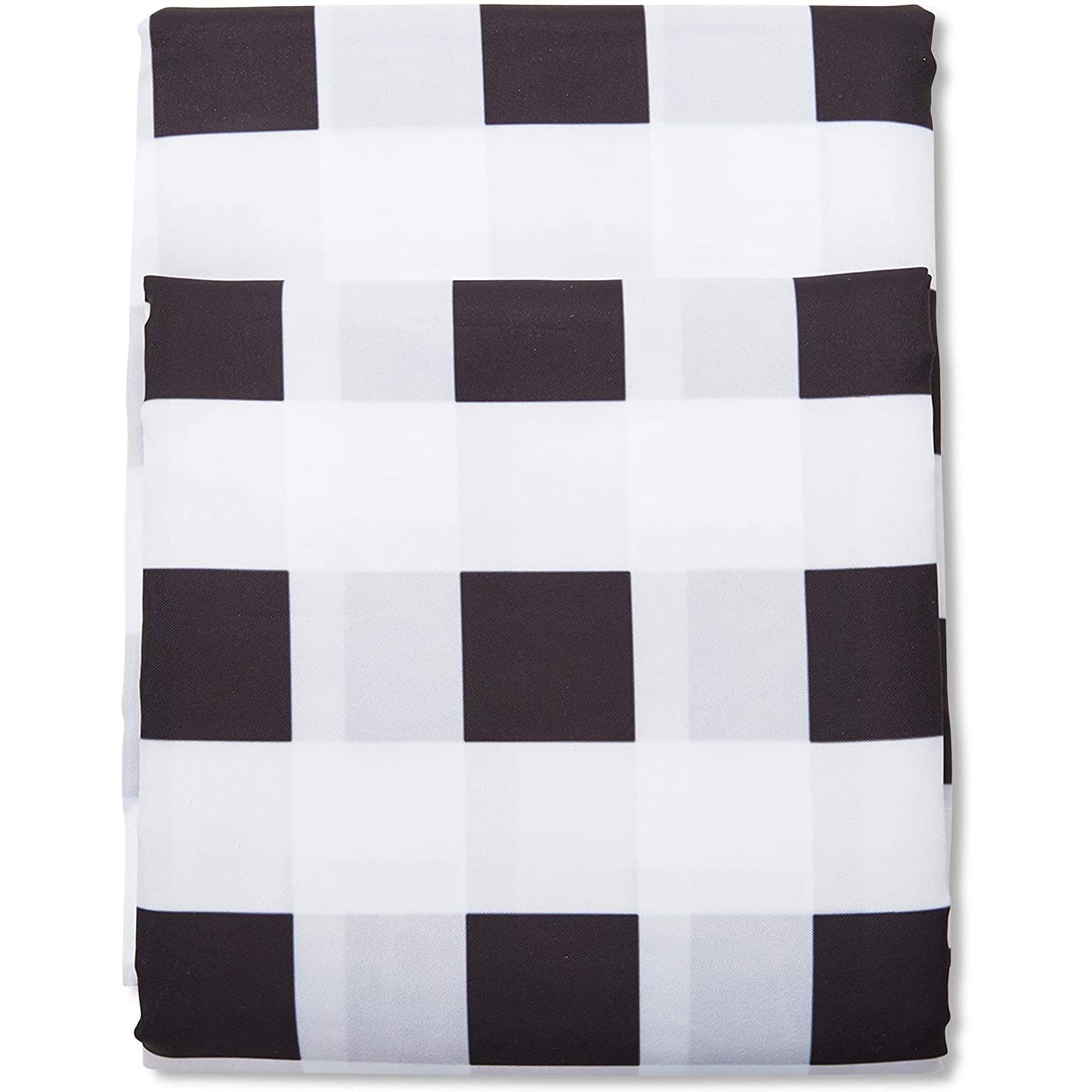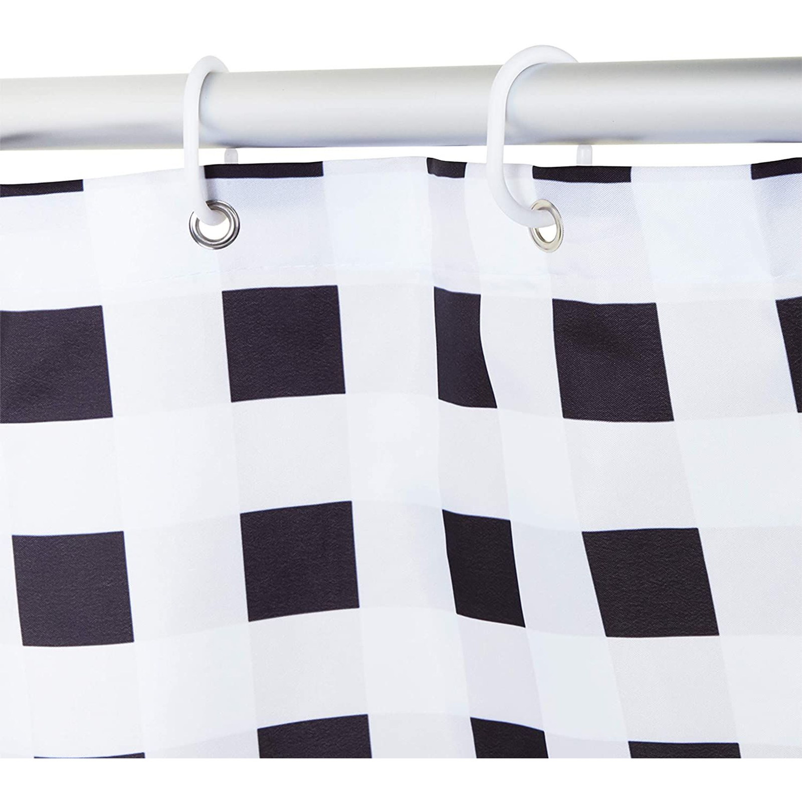 The versatile design of this checkered shower curtain will effortlessly match any modern bathroom decor at home, in a dorm room, or in an RV. The shower curtain is machine washable and includes 12 plastic hooks for easy installation.