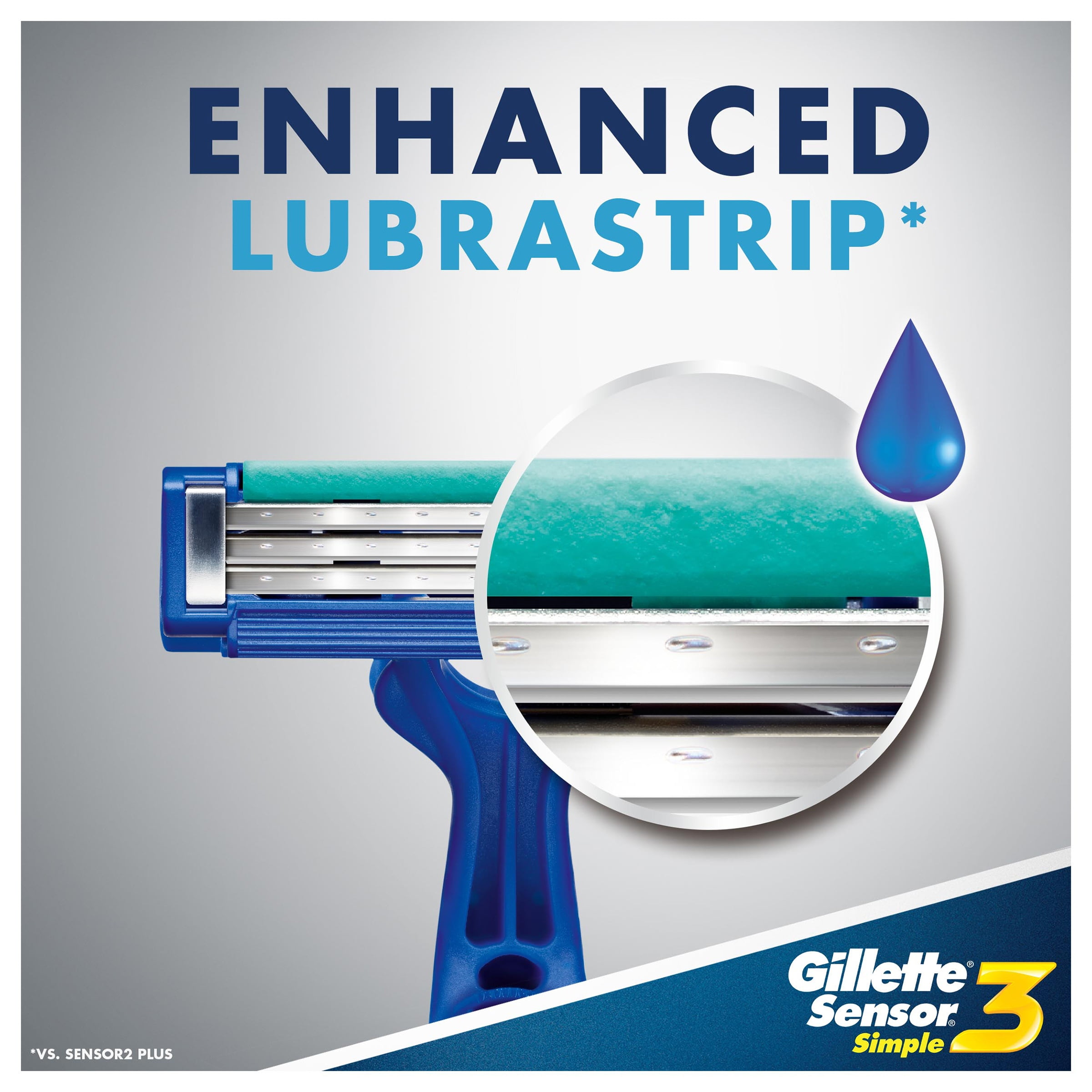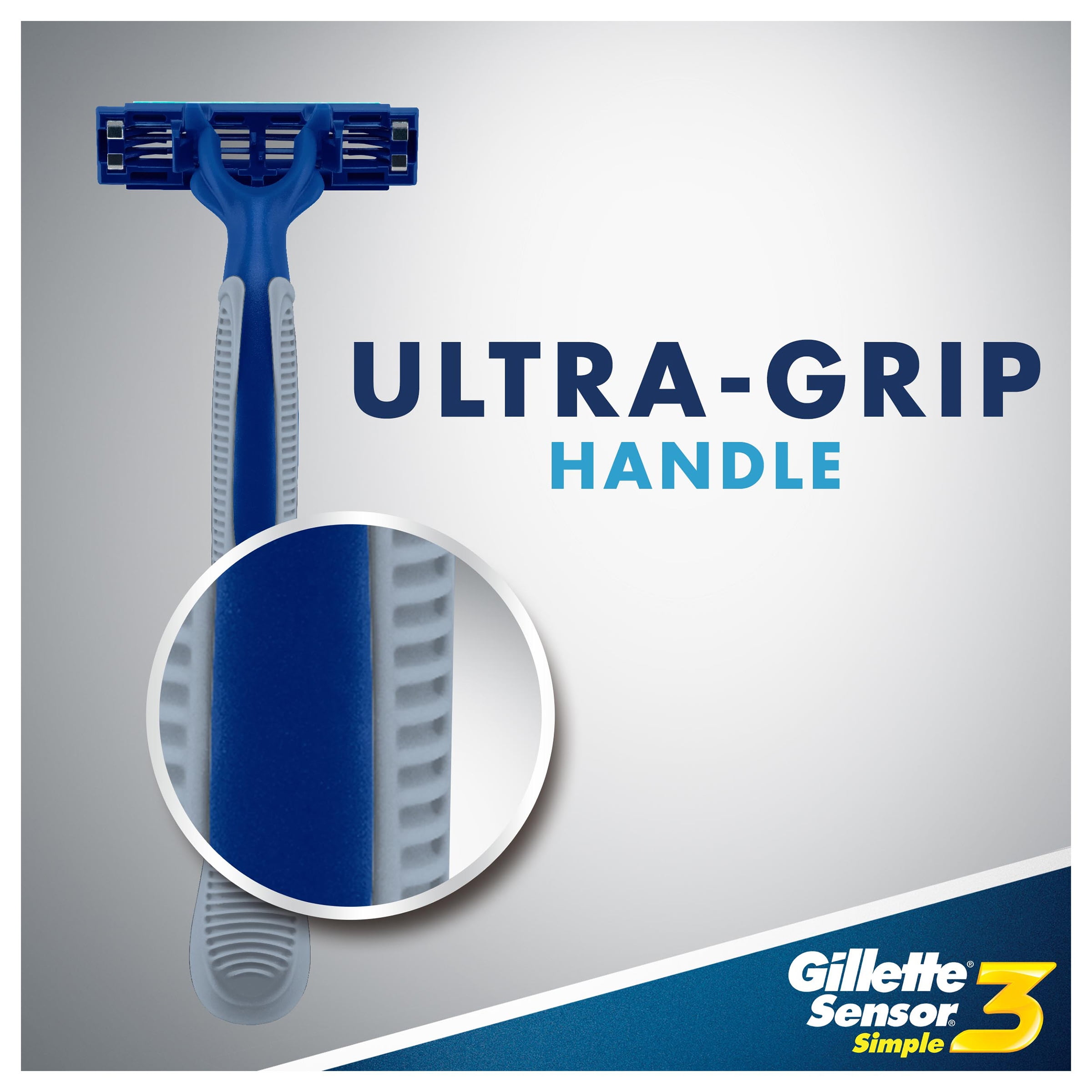 Gillette Sensor3 Men’s Disposable razor is the world’s #1 selling 3-blade disposable. The razor offers a smoother shave and has 100% better rinsing (vs. Sensor2 Plus). It features an Enhanced Lubrastrip that helps blades glide over. Complete with a non-slip rubber handle for great control and maneuverability. Get up to 7 clean shaves per razor.