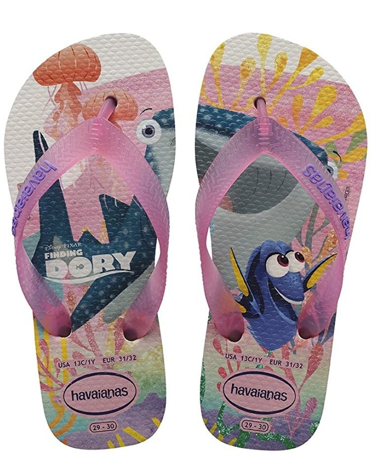 Rubber. Rubber sole. Thong style. Cushioned footbed with textured rice pattern and rubber flip flop sole. Made in brazil.Havaianas Kids Nemo E Dory – White (Man-Made) Childrens Sandals – 27/28 BR