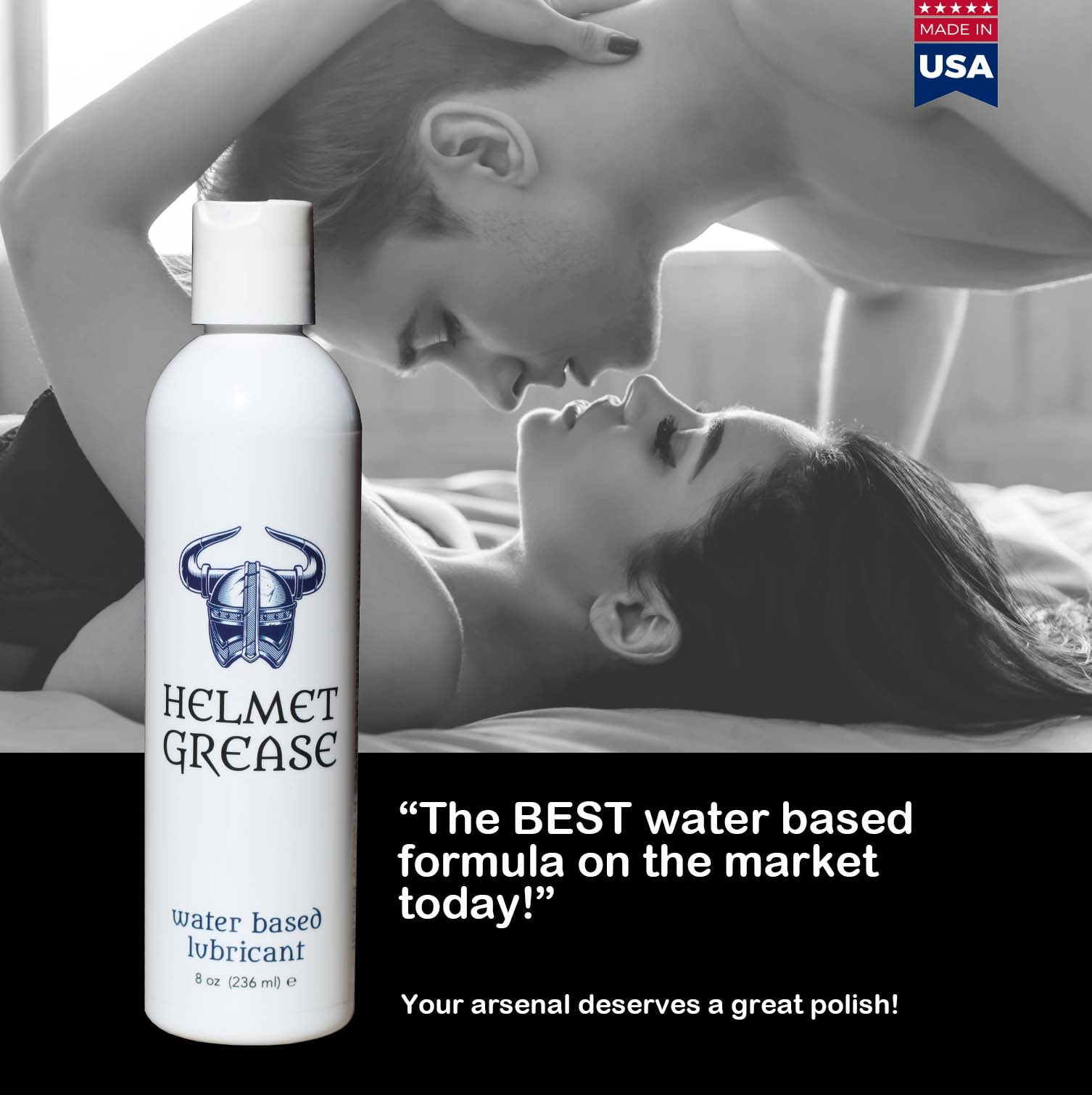 Helmet Grease Premium Water Based Lubricant is a breakthrough formula unparalleled in the personal lubricant industry. Smooth and slick, it feels like a pure silicone lubricant. It is the perfect mate for your entire arsenal. Helmet Grease Water Based Lube is safe for oral, is non-sticky, and cleans up with water! This water based lubrication will provide you with all the sexual enhancements you are looking for.