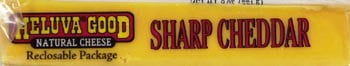 Heluva Good Sharp Cheddar Cheese, 8 oz. Keep refrigerated. Contains: Milk. 8 oz (226 g) Sodus, NY 14551 888-611-4341