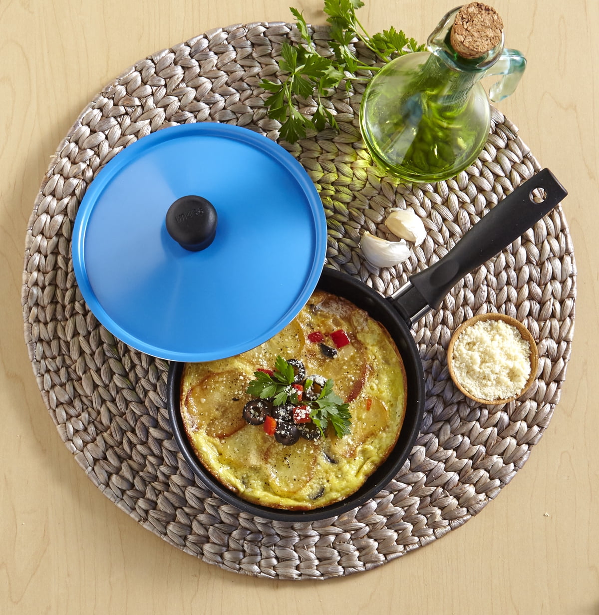 The IMUSA mini 6" egg casserole is easy to store, its nonstick coating facilitates cleaning process and help you serve right off the pan with ease. They are full of color which will make cooking fun and will brighten your kitchen decor. IMUSA mini egg casserole is a versatile and handy element for anyone. Enjoy making delicious omelets, or Huevos Rancheros. The bright colors will highlight your kitchen and the matching lid will prevent your stove-top from any splattering while cooking. The small ideal size comes in handy when preparing single serve meals. IMUSA mini egg casserole is a versatile and handy element for anyone due to their single serving size and matching lid. It is a new fun and healthy way to create your favorite eggs without them sticking to the pan. Next time you are in the mood for delicious eggs, make sure to sue your IMUSA mini egg pan, you will not be disappointed.