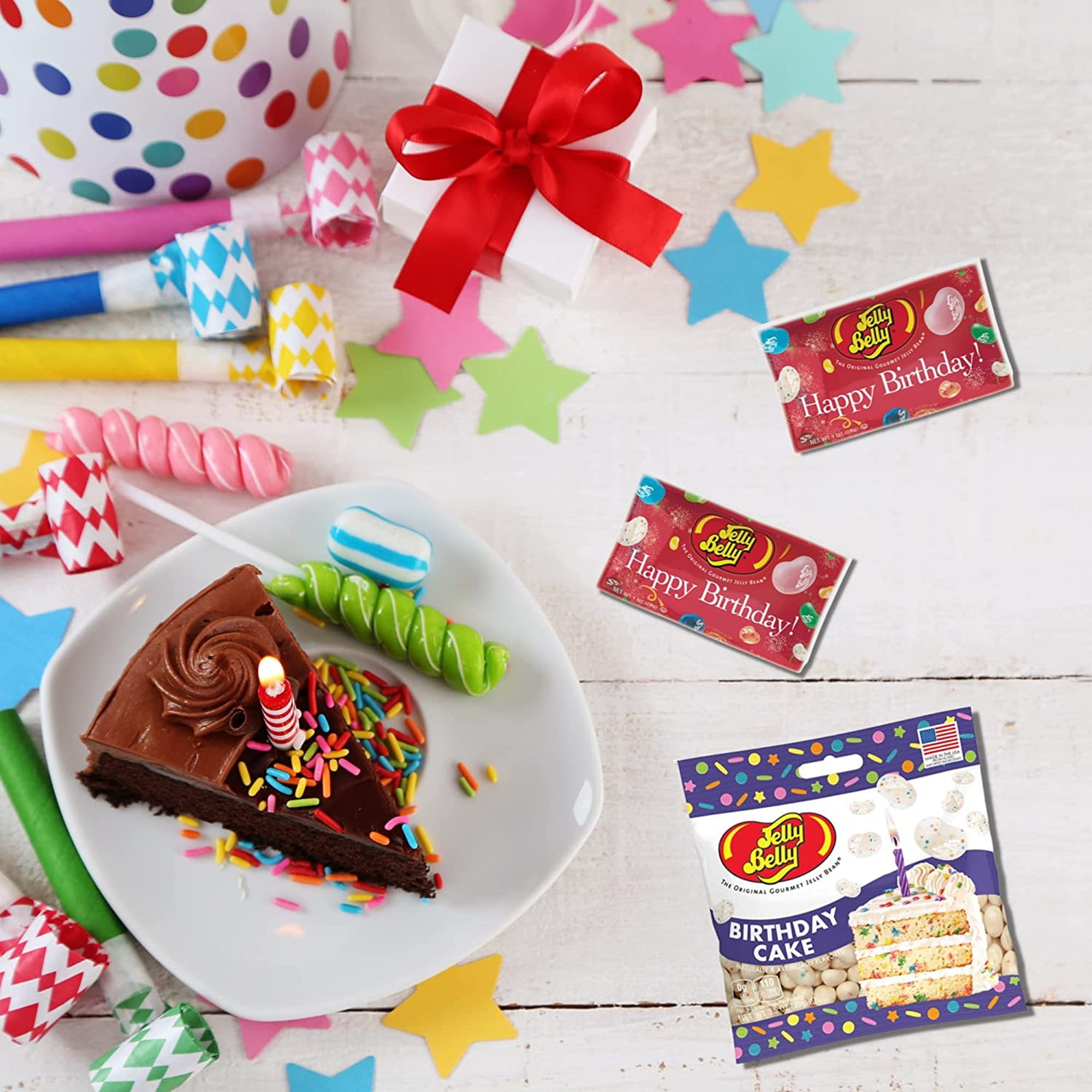 - JELLY BELLY Birthday set includes 2 mini bags of Happy Birthday Jelly beans and one bag of birthday cake flavored beans. It is the ultimate multipack for the birthday cake lovers in your life.
