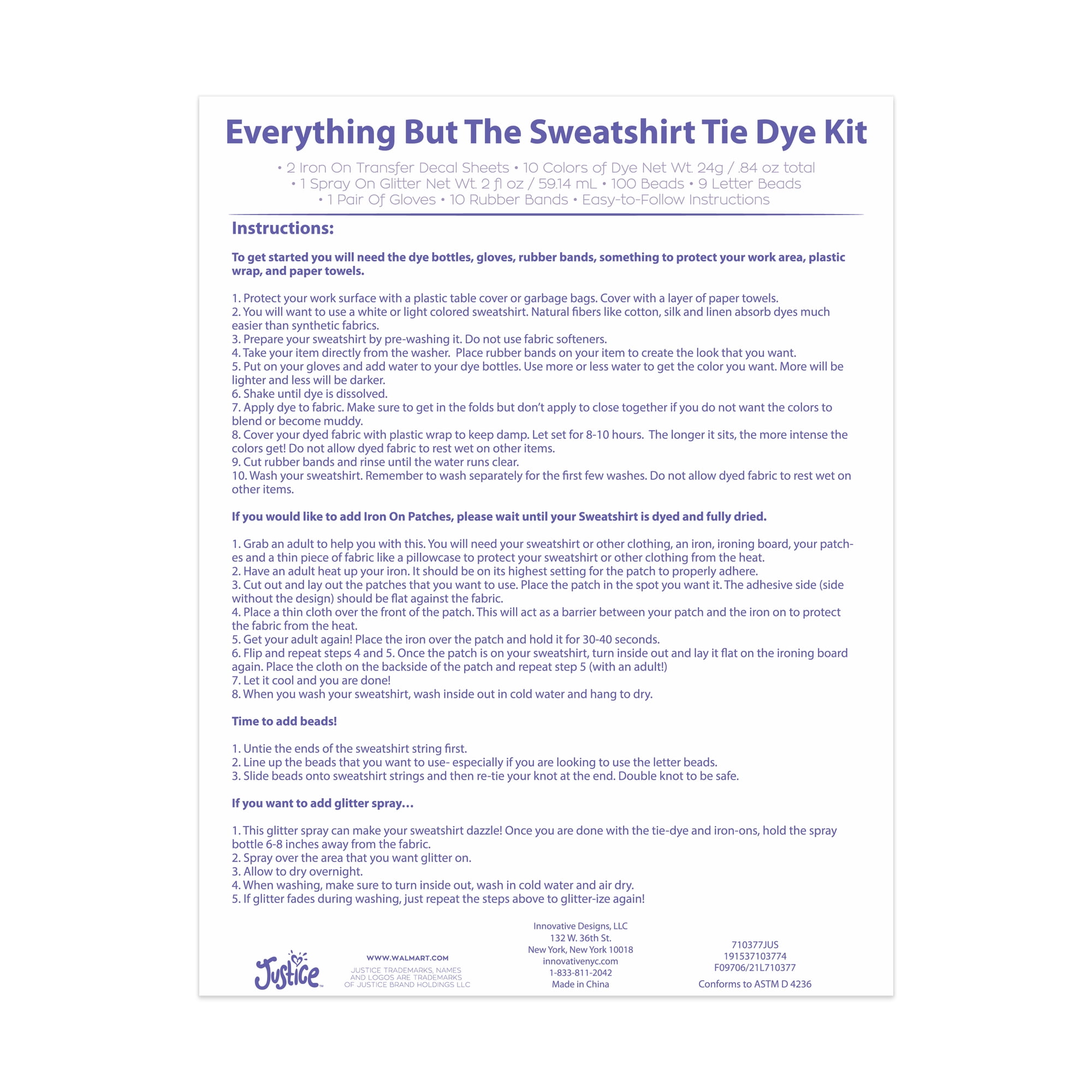 Justice Unisex Child & Teen Everything But the Sweatshirt Tie-Dye Kit