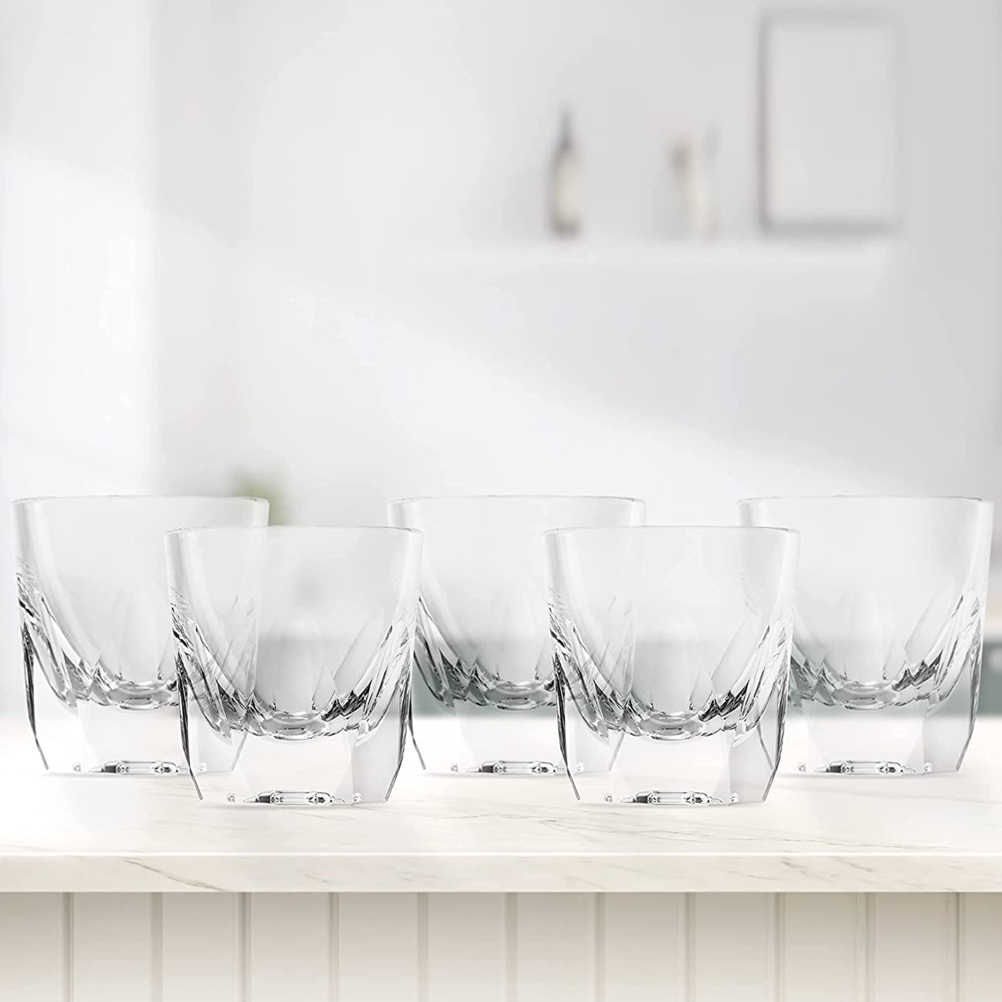 These whiskey tasting glasses are made with sturdy glass and feature an elegant paneled design for maximum clarity and stability. Each scotch glass cup is also crafted with a wobble-free weighted base that’s satisfying to hold and easy to sip from. You’ll always have a pleasant experience with these clear drinking glasses!