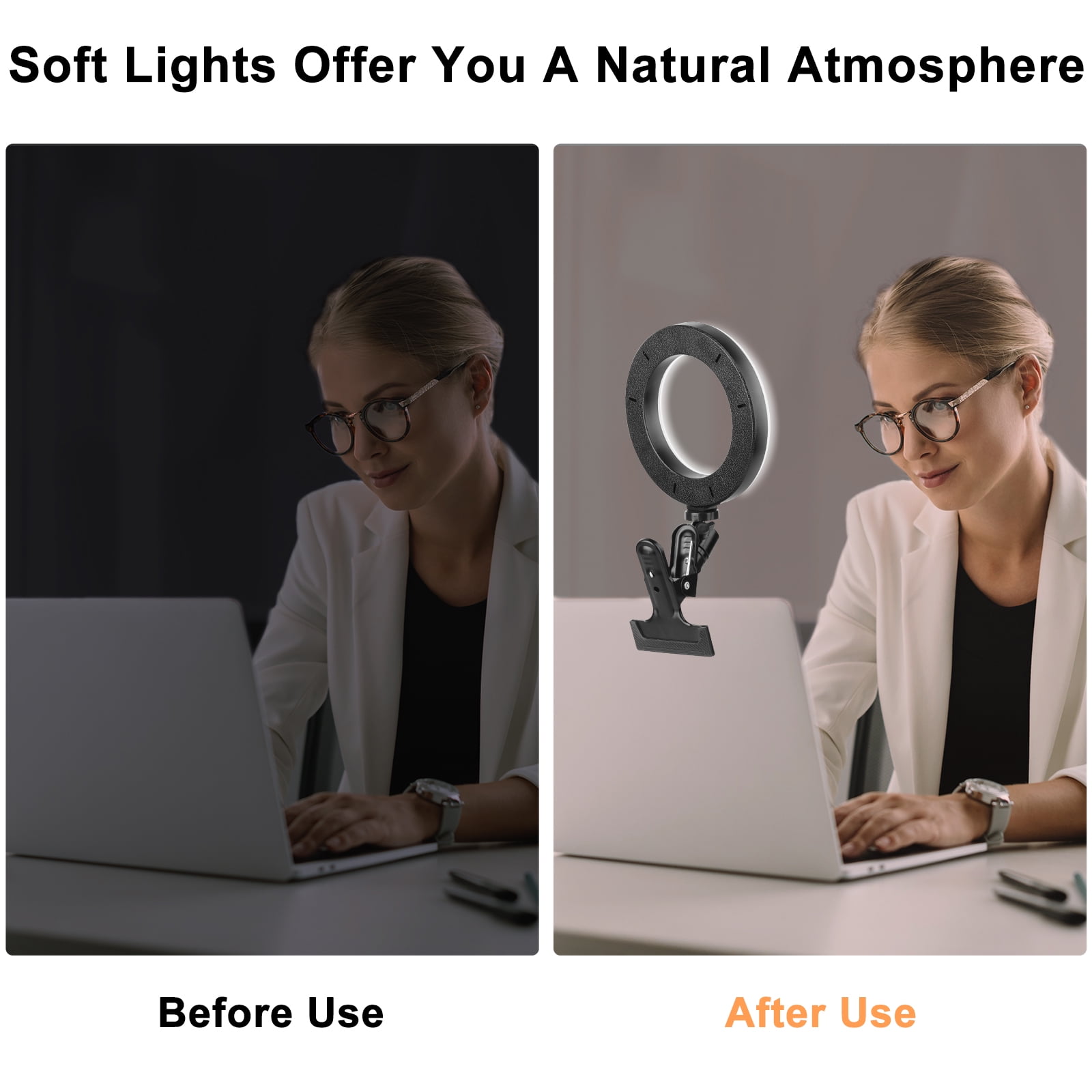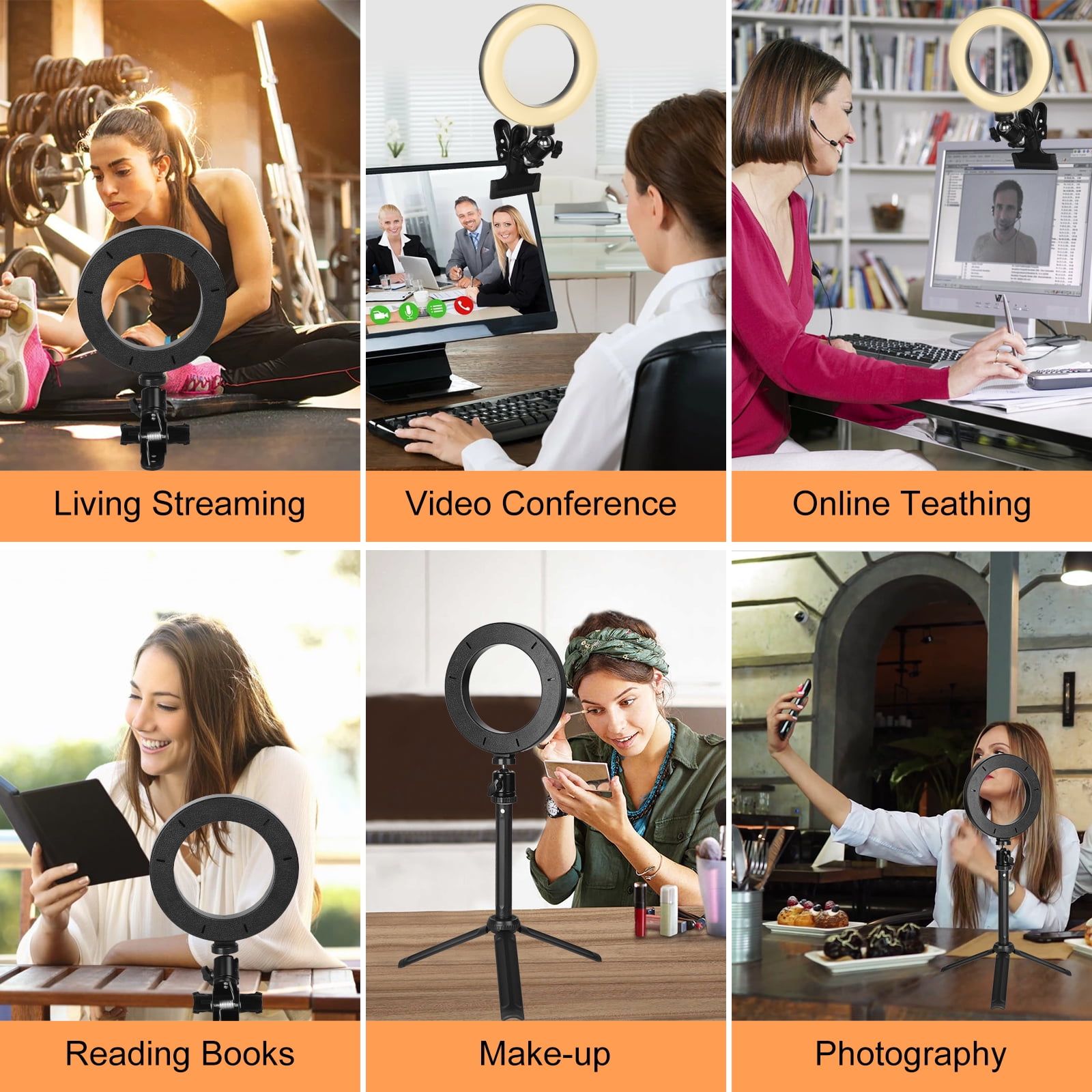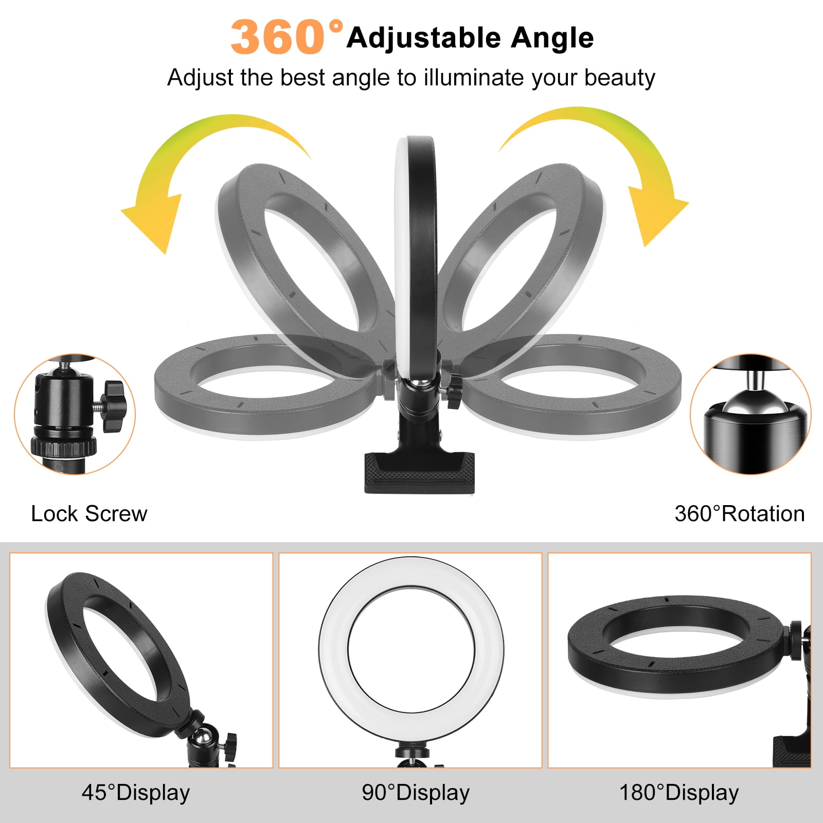 LED Ring Light with 19′ Tripod Stand Phone Holder, TSV Dimmable Desk Selfie Video Conferencing Lighting Lights Clip on Laptop for Photography, Makeup, Broadcasting, Live Stream, YouTube