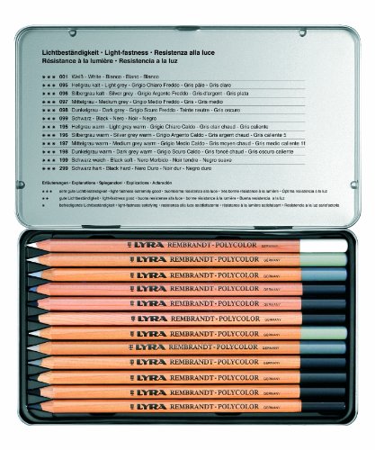Lyra Rembrandt Polycolor Pencil Set, Black, White & Gray Tones Set, 12-Pieces