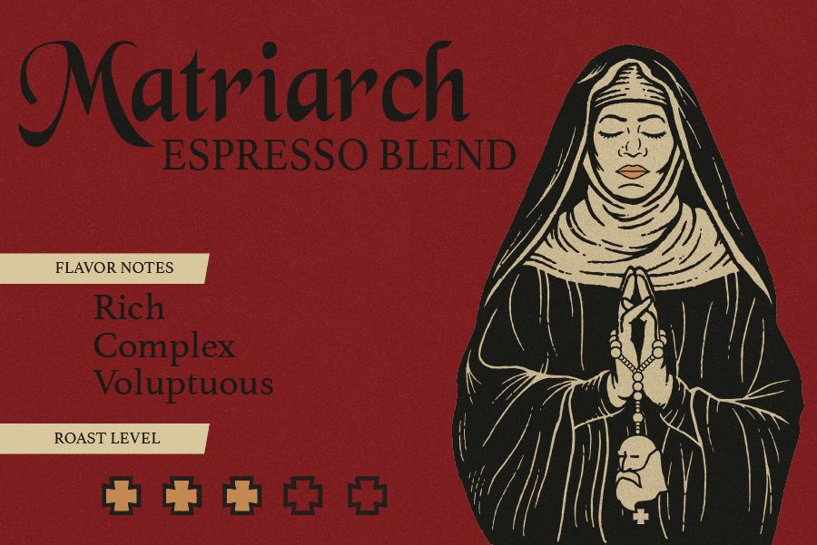 Mad Priest Coffee Roasters – To curious people who are sick of the bland, corporate, heretical coffee experience, Mad Priest Coffee Roasters is the unconventional, creative, sacred coffee choice. While we may be irreverent, we always take our coffee and our mission seriously. We are mad about injustice, especially societal inequality…and bad coffee. Matriarch Espresso Endowed with beauty and strength, wit and grace, she is a queen and mother of us all. Many have the honor of such a Matriarch in their families. And for those who don’t, well there are plenty of sisters in the faith to look up to. “Here’s to strong women. May we know them. May we be them. May we raise them.” – author unknown. Our Matriarch espresso blend is a celebration of the strong women in the world. The milk chocolate and dense fudge flavor notes of washed Latin American coffees and bright sweetness of natural Ethiopian coffees pair exquisitely with steamed milk or solo as a shot! With rich, complex, voluptuous flavor notes, old school and 3rd wave coffee drinkers alike will agree this is the best espresso! “An excellent woman who can find? Her value is more precious than jewels, and her worth is far above rubies or pearls.”