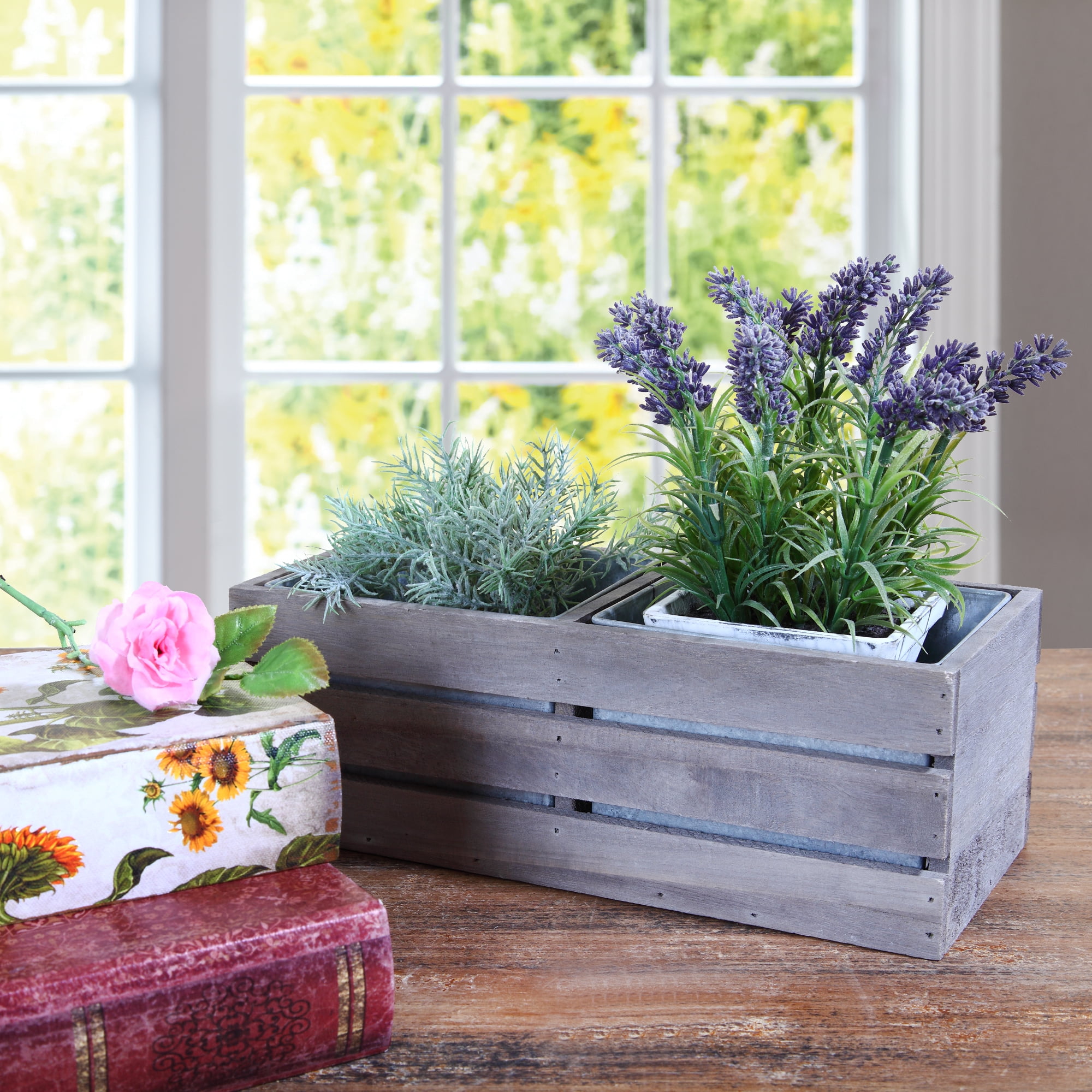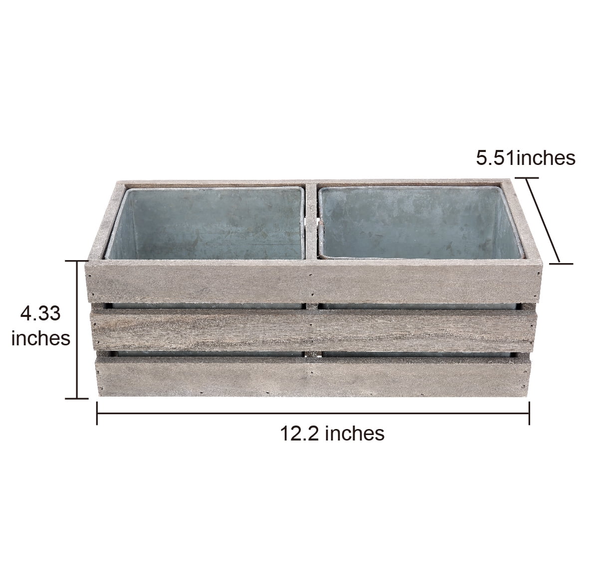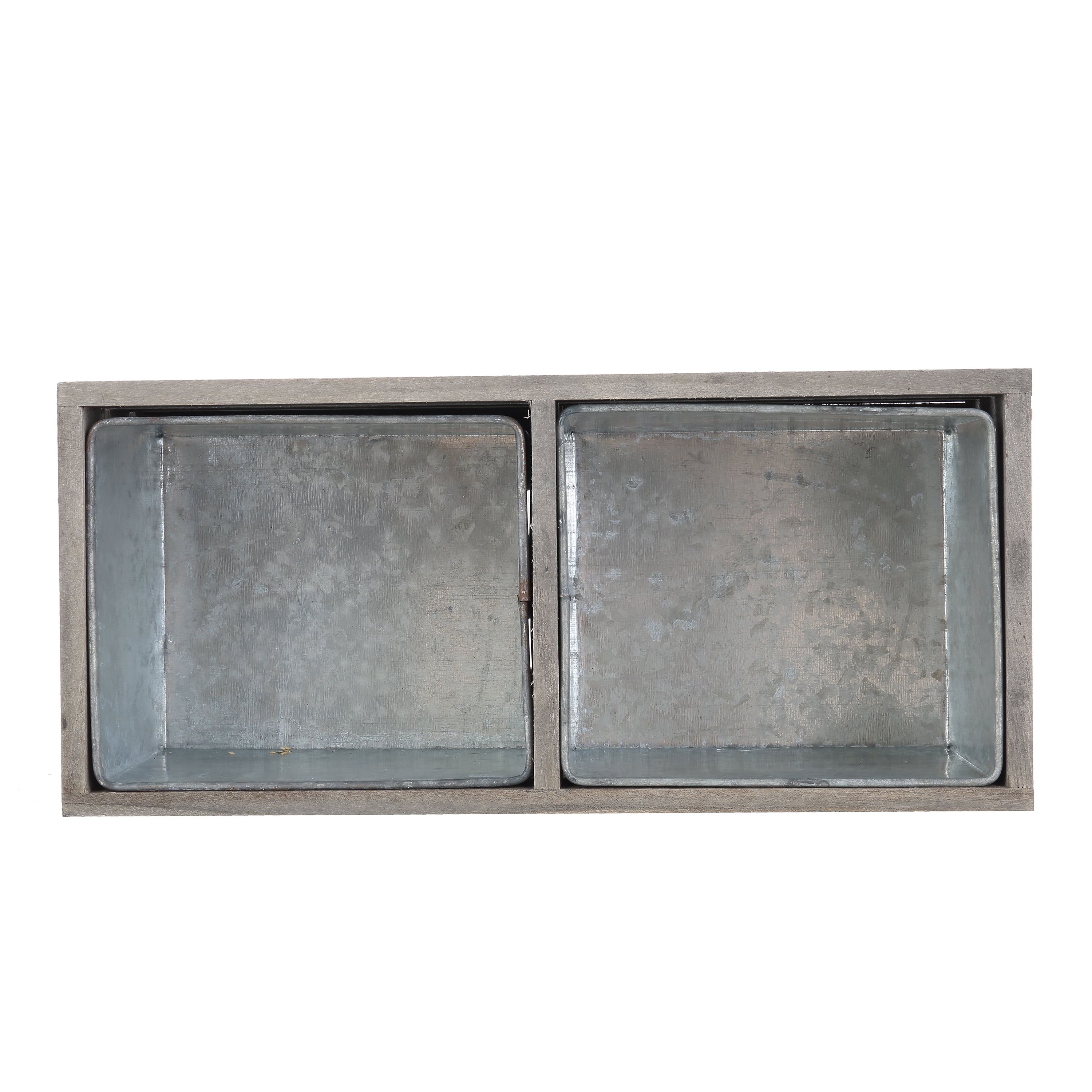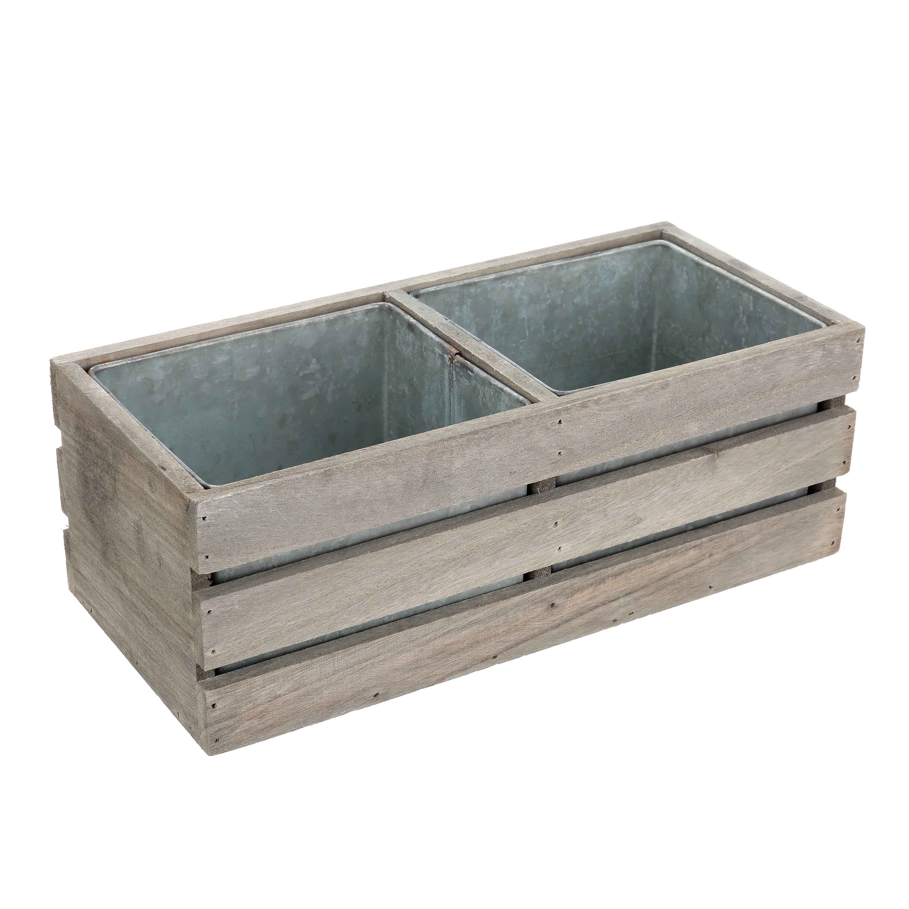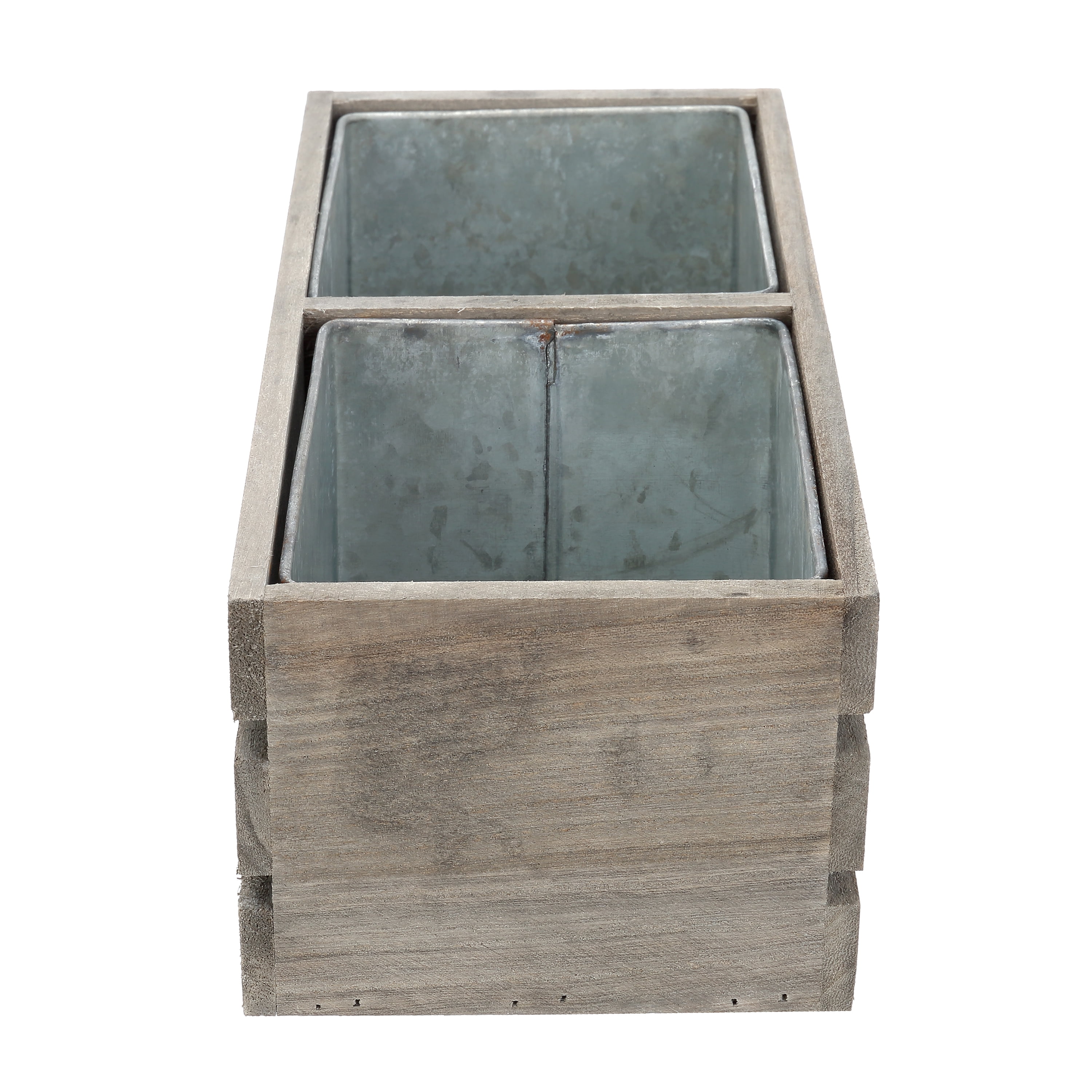 The Mainstays Grey Wood Decorative Planter with Removable Metal Inserts will add the perfect finishing touch to your space. It makes for a beautiful rustic accent piece to display your faux floral or succulents on a shelf, windowsill, tabletop, or mantle. This decorative planter features two removable galvanized metal inserts, and the grey tones blend well with any décor. Please note that this planter is not designed to be used with real plants, only artificial.