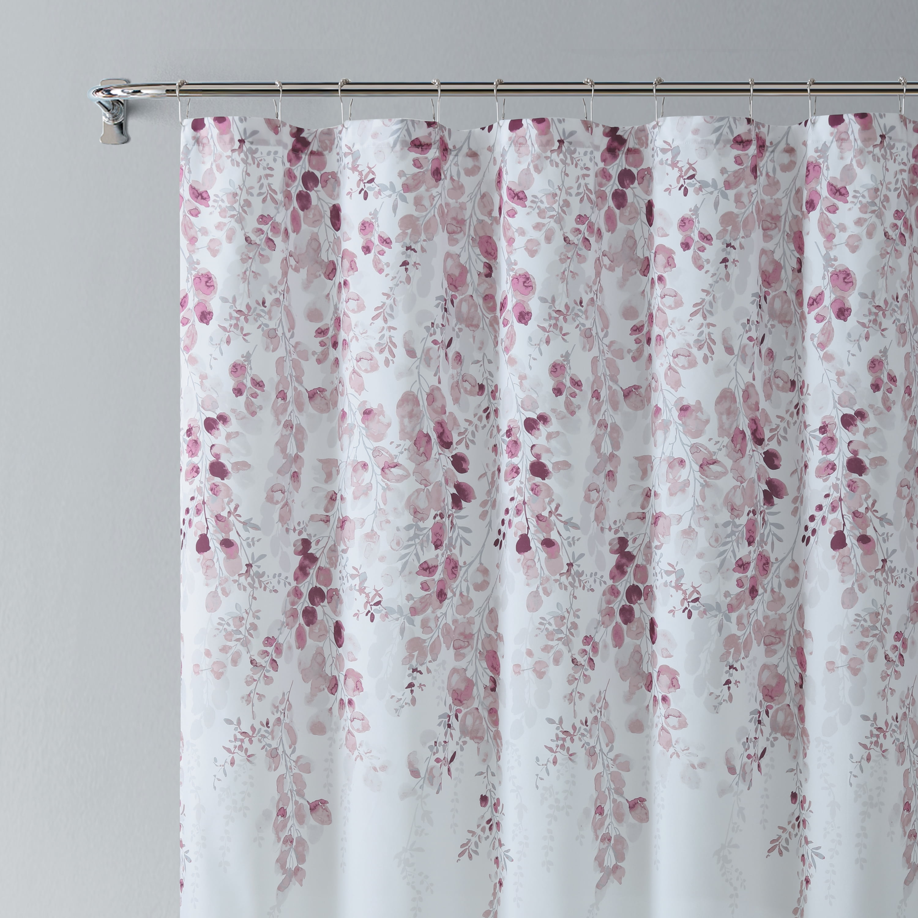 Mainstays Wisteria Mauve Floral Polyester 15-Piece Shower Curtain Set: