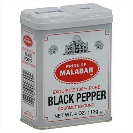 Pride of Malabar Ground Black Pepper 4oz. (113g)Thefinest hand-picked tellicherry pepper contained in each package is the worlds most sought-after black pepper. Only the highest-quality peppercorns are selected. Thepepper is packaged at the source right after being harvested and processed at the farm locking in its freshness. This freshness is immediately revealed with thepowerful aroma that greets you upon opening the package.Ingredients: pure black pepperKosherProduct of India