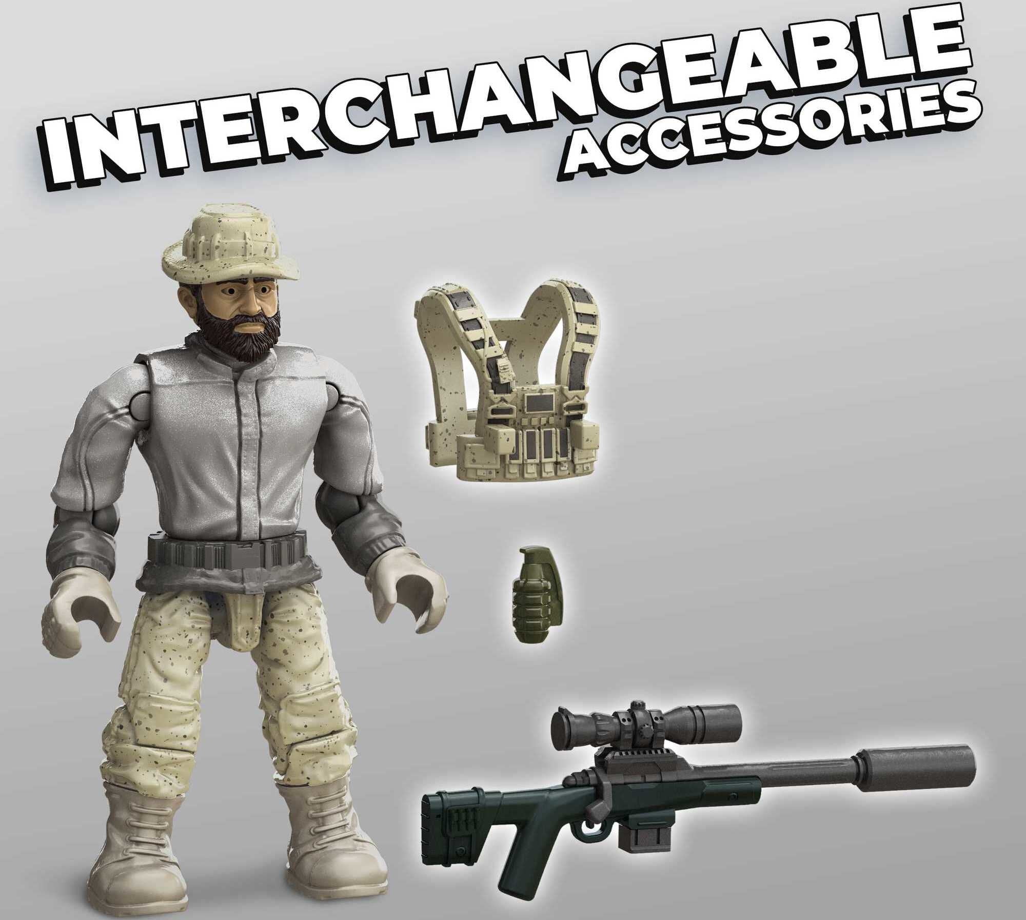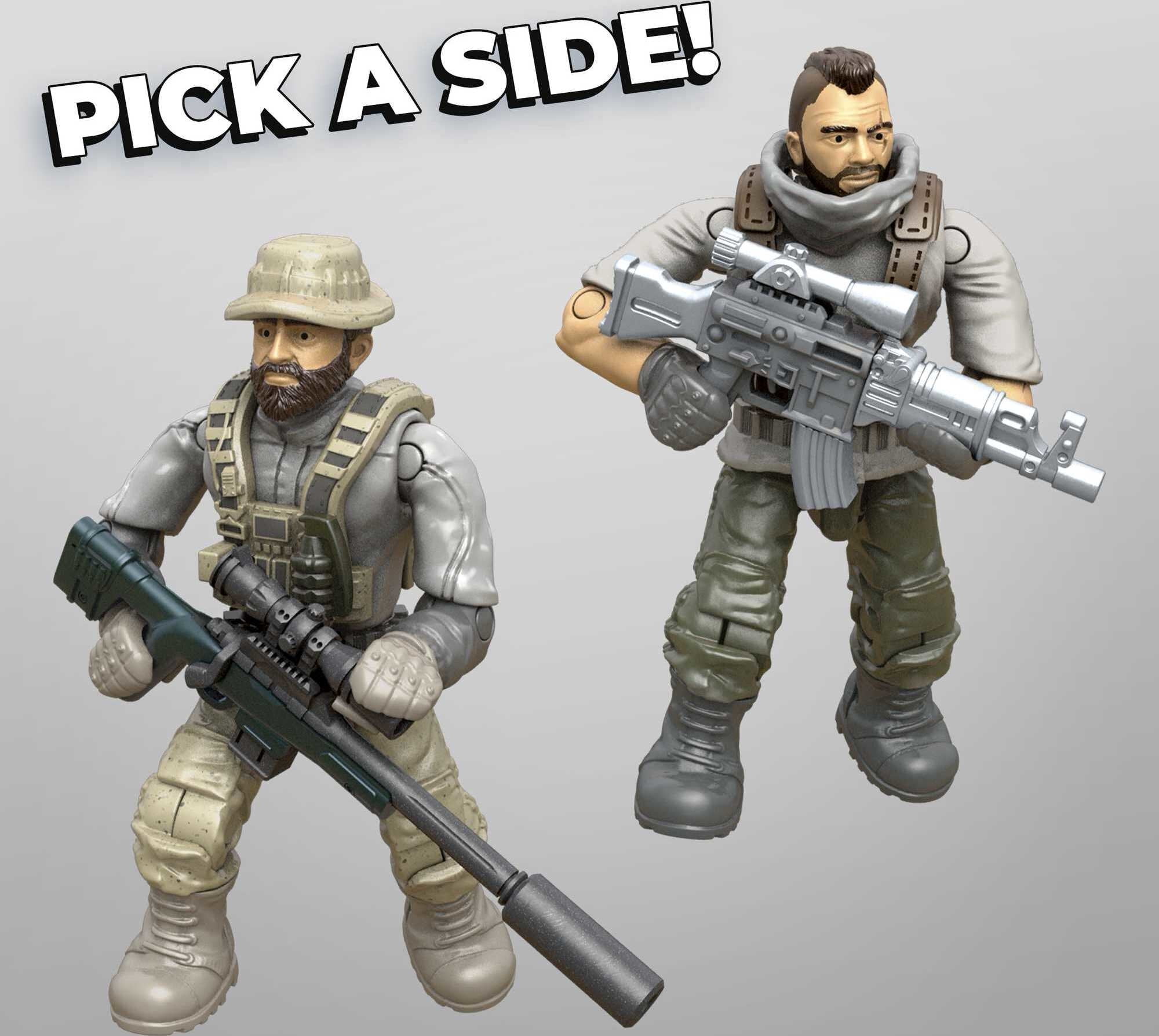 Pit 4 highly detailed, super poseable soldier micro action figures against each other in a battle inspired by Call of Duty: Modern Warfare and Call of Duty: Black Ops. Featured characters include Soap MacTavish, Captain John Price, Frank Woods and Jason Hudson. Each figure comes equipped with detachable armor and accessories, including a wing suit with poseable display stand. Ideal for Mega Construx Black Series collectors, ages 16 and up