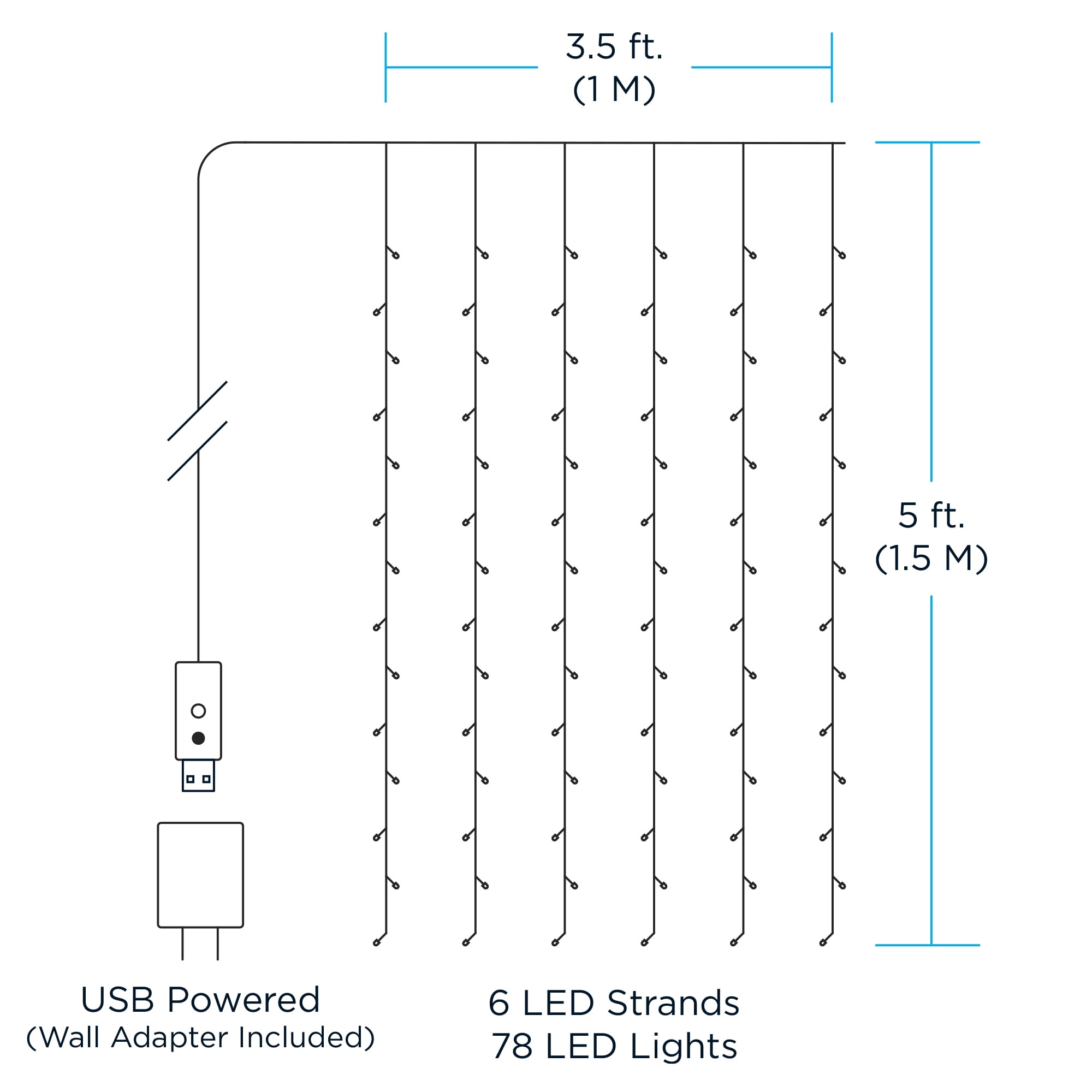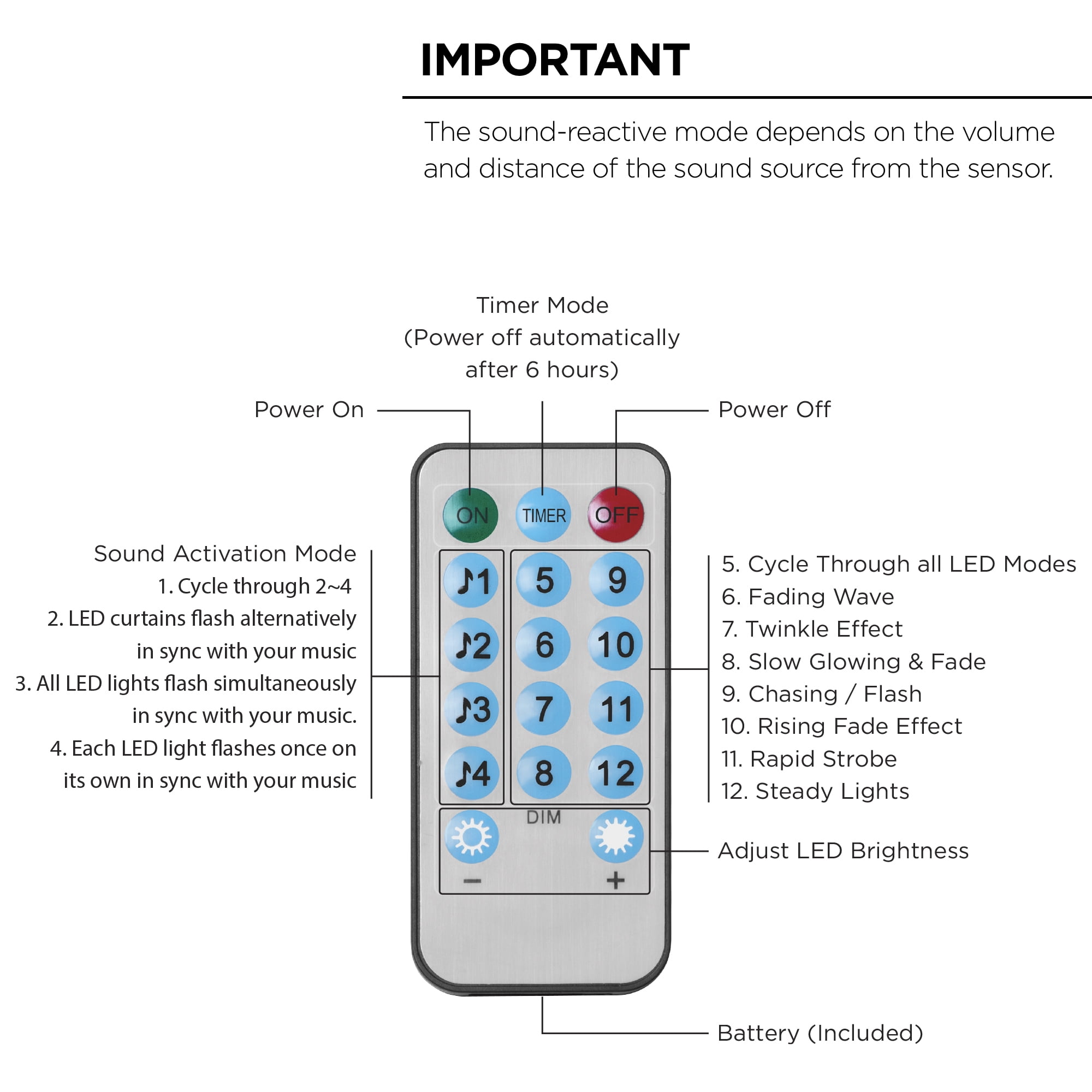 Merkury Innovations Curtain Lights, Warm White LEDs, Sound Activated, Remote Control, Power Adapter