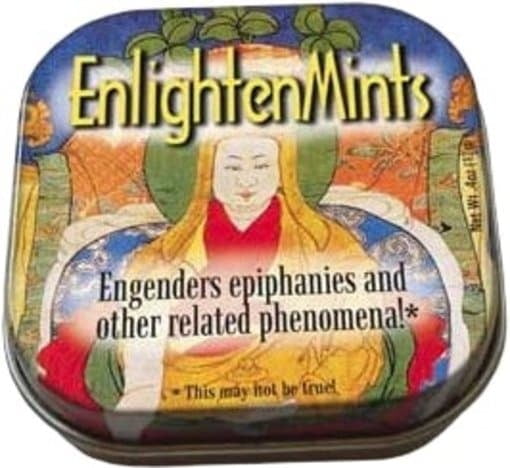In your quest for enlightenment, you’ve tried it all. Yoga, meditation, ashrams, gurus, herbal teas, acupuncture, fasting, hiking, chanting, and… the list is endless. Little did you know that complete enlightenment is just an e-commerce click away, thanks to Enlightenmints. Just pop one or two in your mouth, close your eyes, and let the minty taste transport you to an inner kingdom of peace, knowledge, and tranquility. All of your problems will come into focus, truths will reveal themselves, and your breath will become as pristine as a Himalayan stream. Even the reusable tin they come in is inspiring! And what if you discover we’ve exaggerated and they don’t do all that we claim? Well, that’s a form of enlightenment too, isn’t it?
