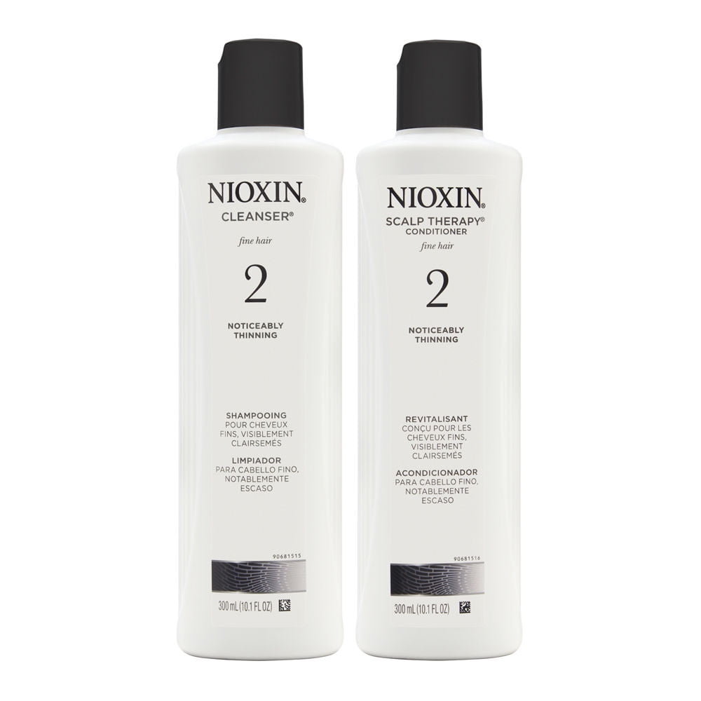 Nioxin System 2 Cleanser is a volumizing cleanser that helps to remove follicle-clogging sebum and environmental residues from the scalp and hair. Cleanses to provide thicker-looking hair for noticeably thinning, fine natural hair. Nioxin System 2 Scalp Therapy is a lightweight conditioner that helps provide hair resilience and controls moisture balance for noticeably thinning hair. For noticeably thinning, fine natural hair.Nioxin System 2 Cleanser + Scalp Therapy, Fine Hair | Noticeably Thinning 2 x 10.1oz DUO