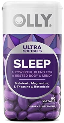 OLLY Ultra Strength Sleep Softgels, 6 mg Melatonin, Supports Deep Restful Sleep, Magnesium, L-Theanine, Chamomile, Lemon Balm, Nighttime Sleep Aid, Non Habit-Forming – 60 Count (Packaging May Vary)
