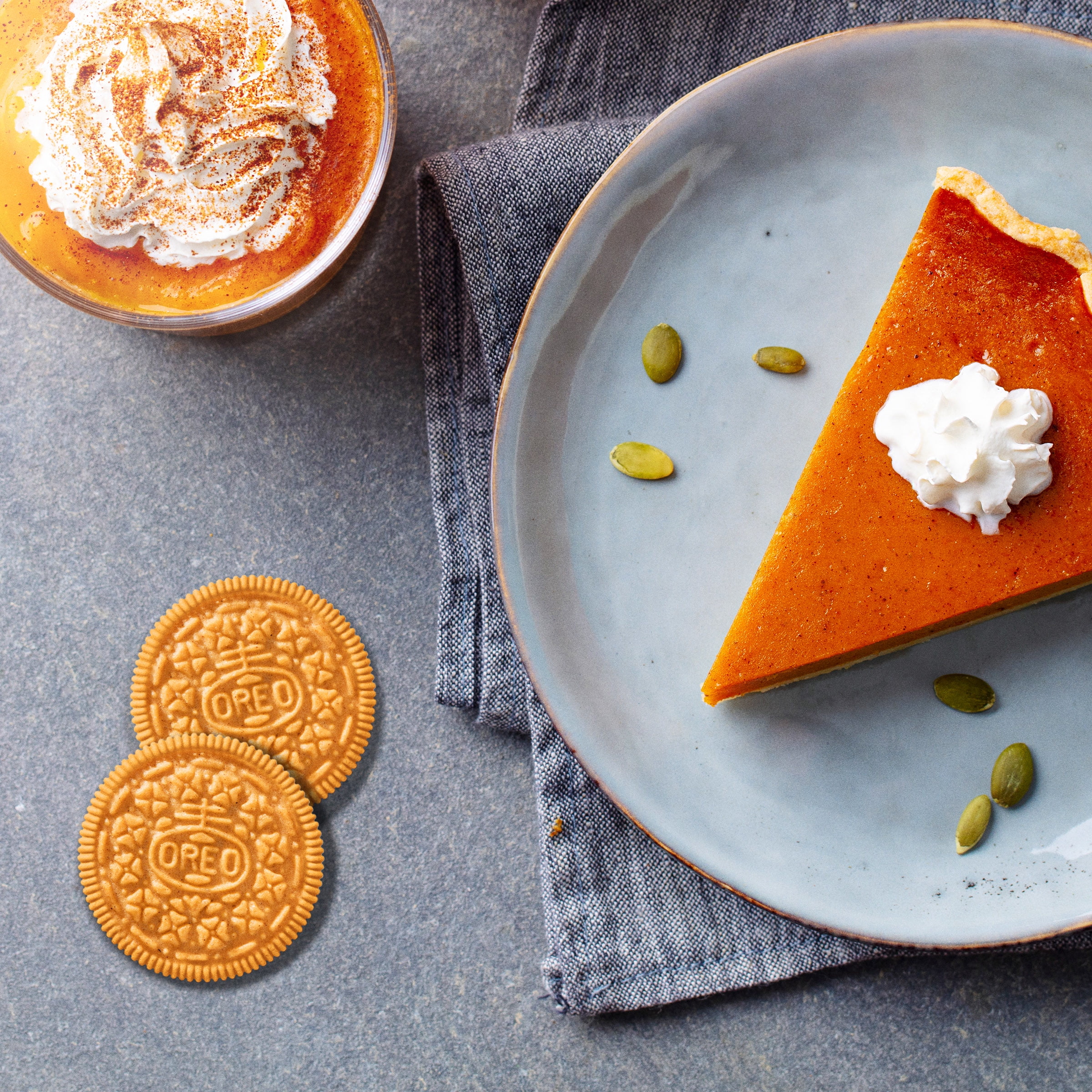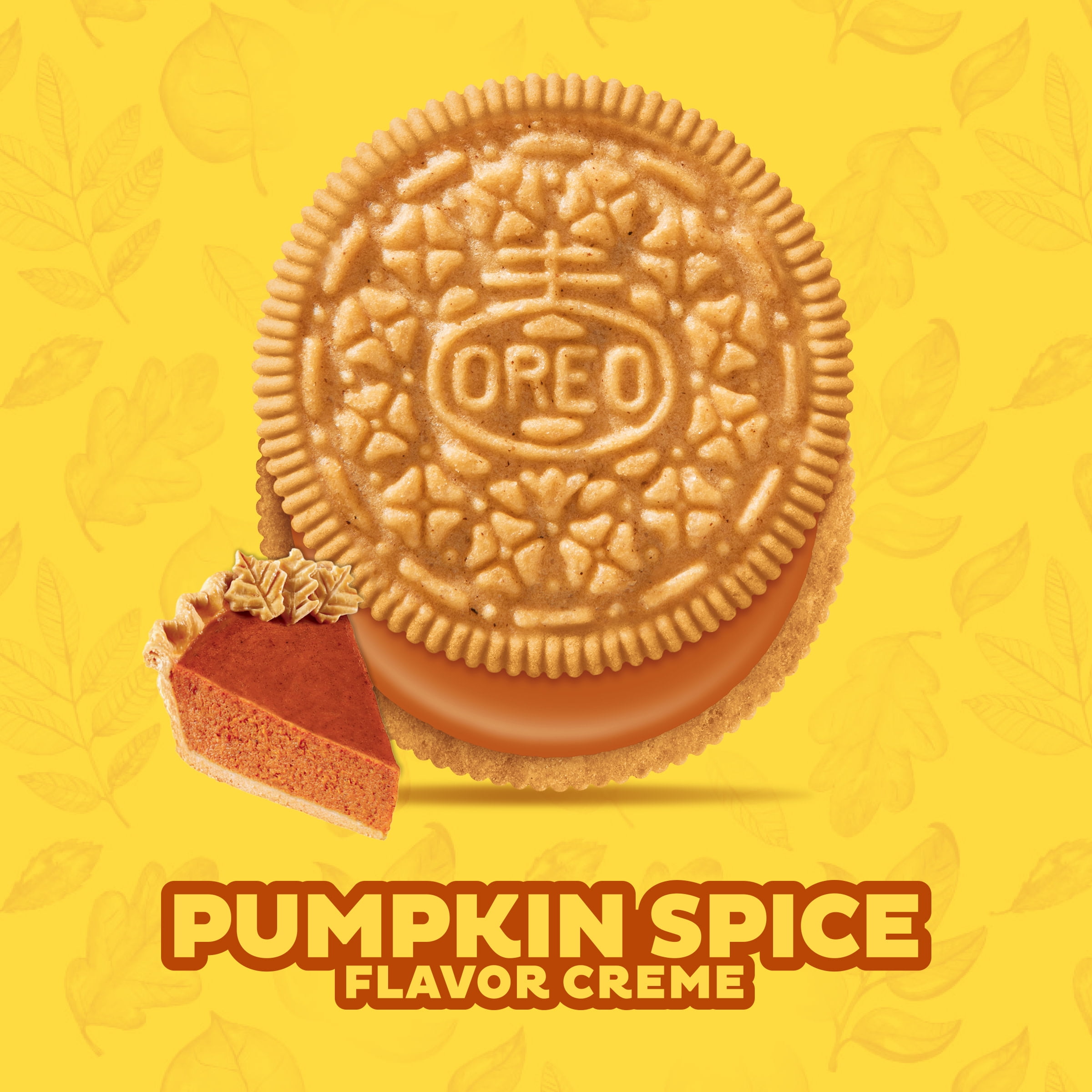 - OREO golden wafer cookies filled with rich pumpkin spice flavored creme