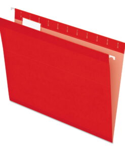 Durable hanging Pendaflex folders in pink provide a smart option for everyday filing. Contrasting kraft paper interiors help prevent time-wasting misfiles. Hanging folders come with a printable label sheet and 25 clear, 1/5-cut tabs. Slide tabs in various slots along the inside top of the folder keep your labels in view.
