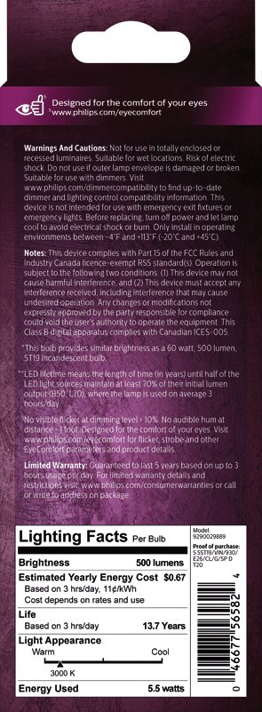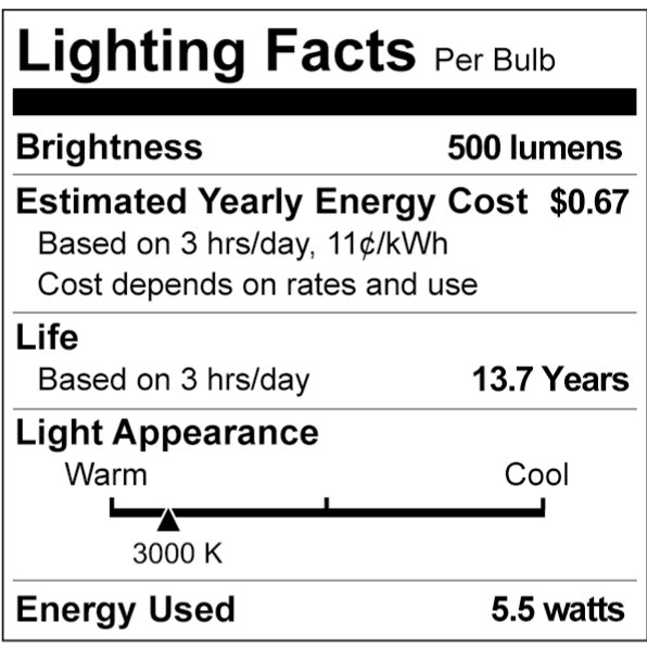 - Wattage: 5.5W (60W Equivalent)