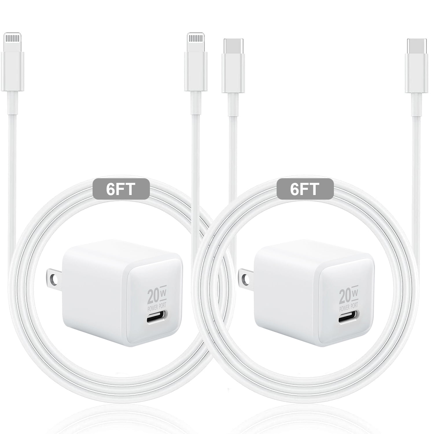 Phone Fast Charger, 2 Pack 20W PD Adapter with 6FT Type C to Lightning Cable Fast Charging USB C Wall Charger