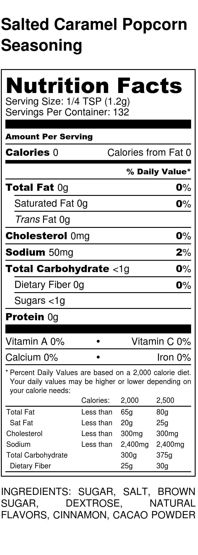 - A perfectly smooth seasoning with deep CARAMEL flavor and just the right amount of popcorn salt! We also layer in brown sugar and cinnamon! Be the star chef who serves the munchy crowd this all time classic?