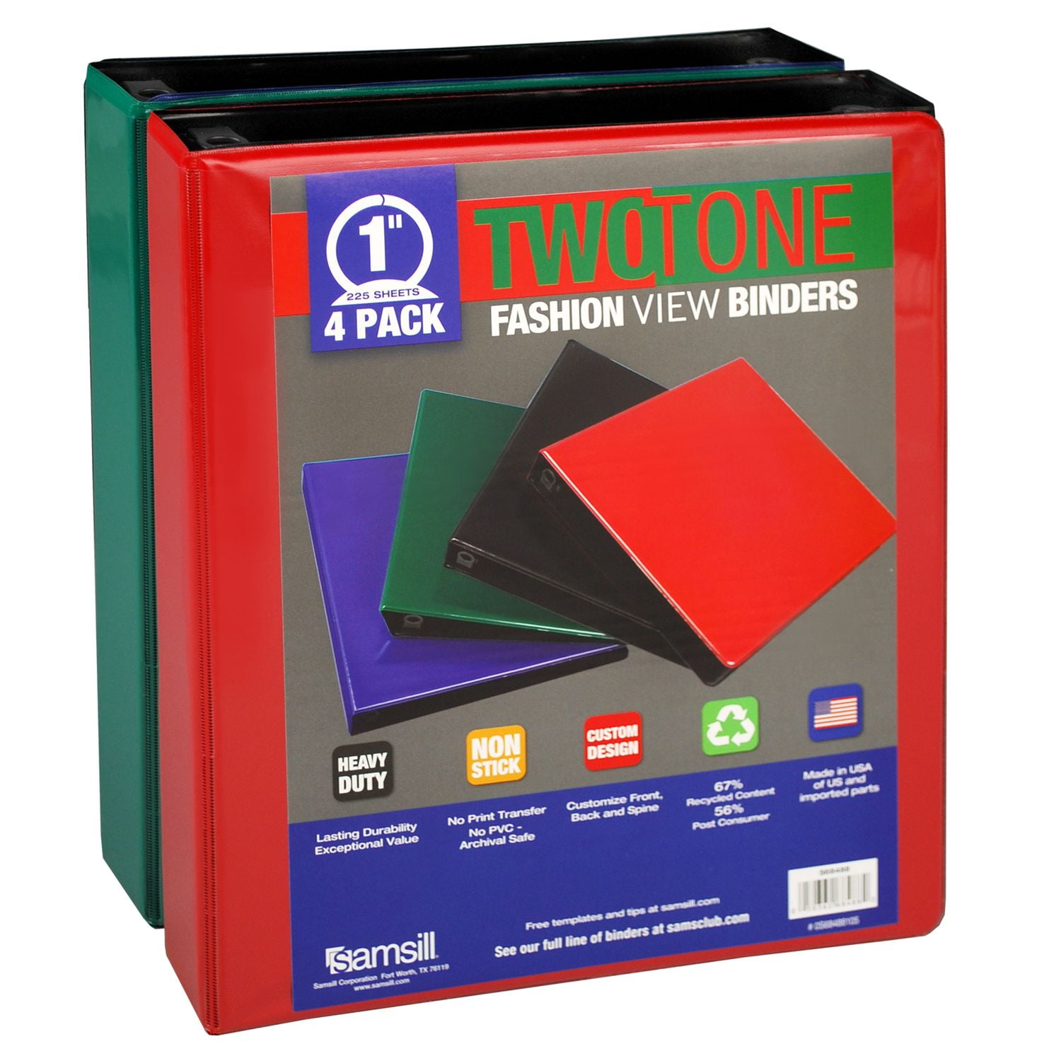 Samsill Two-Tone View Binder, 1′, 4 Pack – Red/Black/Green/Blue