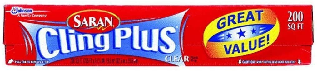 Clear plastic wrap. Keep food protected, the fresh way. Cling Plus wrap is ideal for covering and storing your prepared foods and leftovers even for reheating them in the microwave. It clings tightly to foods, sealing in the freshness, whether you’re bringing your family on a backyard picnic or embarking on a cross country trip. It is also ideal for keeping food fresh on the go. Use it for cookies, fruits, sandwiches, desserts, salads, snacks, vegetables, cheese, and more. Easy tear cutting edge. 200 sq. ft.Saran Cling Plus Plastic Food Wrap