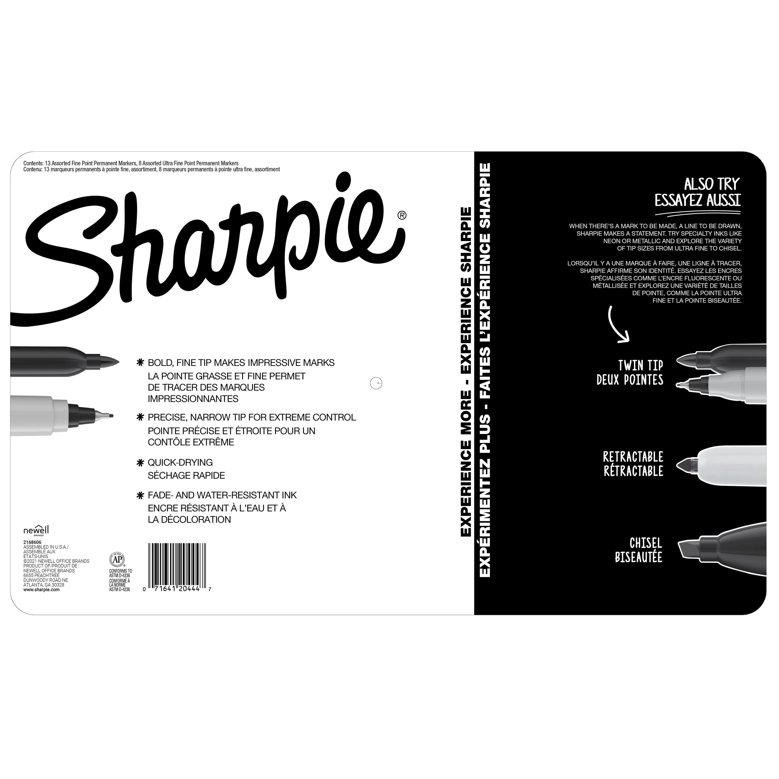 Bold to the max and permanent to the core, Sharpie Permanent Markers inspire you to transform ordinary surfaces into passionately creative statements. Made to write practically everywhere, vivid Sharpie markers eliminate the dull and boring. The original permanent marker, Sharpie has iconic ink that dries quickly and resists both water and fading. While pale imitations wither away, Sharpie assorted markers make creations that endure. This adult pack contains fine point markers built for jaw-dropping marks and ultra-fine point markers for extreme control. Whether in school or at home, Sharpie Permanent Markers inspire you to tell your whole story.