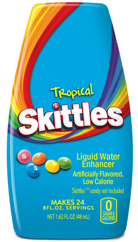 Skittles Water Enhancer is a delicious treat for kids and adults alike. This Skittles Tropical flavored drink mix comes in a convenient squeeze bottle and makes enough for 24 servings of flavored water. This liquid drink mix is sugar-free, caffeine-free, and fat-free. Perfect to include in your bag for pool days or picnics, this flavored drink enhancer is easy to prepare and sip on. Add to a bottle or 8 ounces of water, stir in the drink mix, and you’re ready for a refreshing drink. Enjoy a classic candy now in a water enhancing liquid.