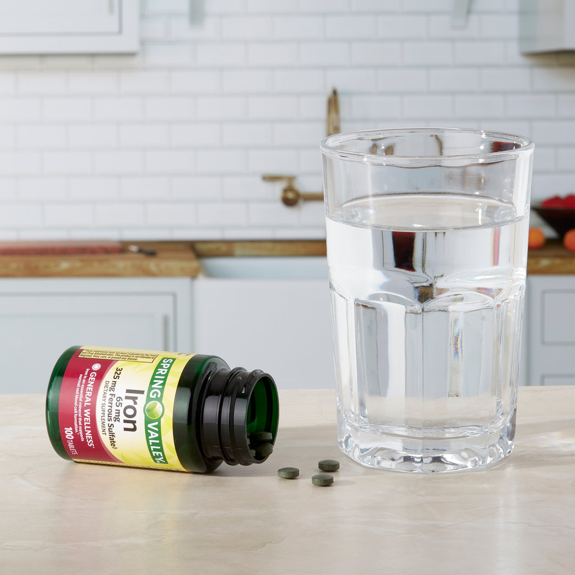 Spring Valley Iron Tablets are a dietary supplement designed to provide general wellness and nutritional support*. Iron is an essential mineral that supports normal red blood cell formation. Suggested adult dosage is one tablet daily, preferably with a meal. You can rest assured that Spring Valley Iron Tablets are produced with strict quality guidelines and are backed by our quality guarantee. Take control of your overall health with Spring Valley Iron Tablets.