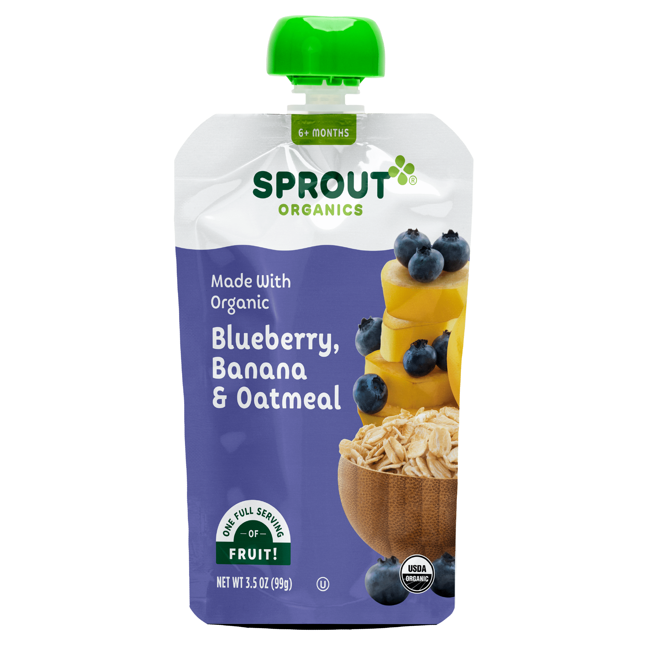 Now in clear packaging! Sprout Stage 2 Blueberry Banana Oatmeal Organic Baby Food is made with whole, organic fruits and oats! Formulated specifically for babies 6 months and up, Sprout Stage 2 purees are just right for your baby’s developing preferences, and will keep them feeling full and satisfied. Certified organic and made with non-GMO ingredients, Sprout Organic Baby Food contains no concentrates, additives, preservatives, or fillers of any kind – only real, honest, and pure ingredients