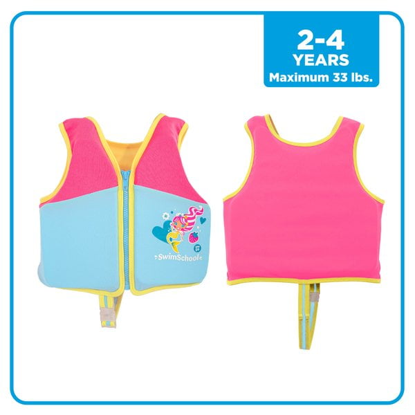 Kids can build water confidence with the Swim School Swim Trainer Vest in Pink. As a level 2 swim trainer, this swim vest is great for beginning swimmers who need a little help in the water. The Swim Trainer Swim Vest provides supportive buoyancy and balanced flotation that tilts kids forward in the swim position allowing them to safely practice swimming and explore the water. The small/medium is recommended for children between the ages of 2 and 4 with a maximum of 33 lbs.