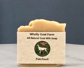 Wholly Goat Farms goat milk soap, made with non GMO oils and scented with therapeutic grade essential oils.Wholly Goat Farm – Goat Milk Soap – Patchouli