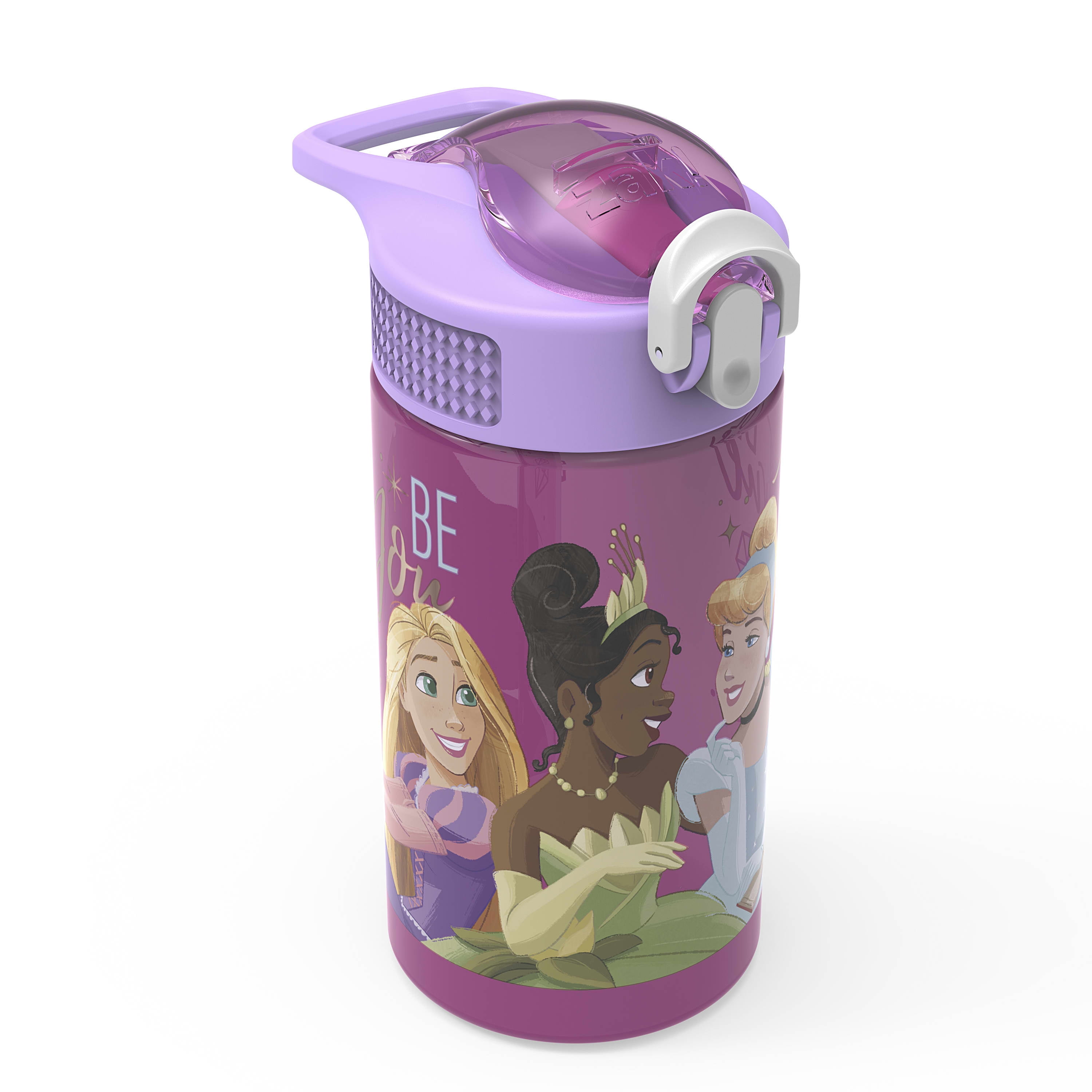 This water bottle holds 16 ounces and is made of durable, BPA-free plastic. To help prevent the spread of bacteria, the comfortable, silicone, antimicrobial spout can be covered to keep it clean when it’s not being used, and the straw is antimicrobial as well. The screw-on lid has a built-in carrying loop for easy transportation, and doesn’t leak when it’s closed, so the bottle can be tossed into a bag for worry-free travel. When it’s not being used, the comfortable silicone spout can be covered to keep it clean. The bottle is dishwasher safe and should not be microwaved. Recommended for children ages 3 and up.