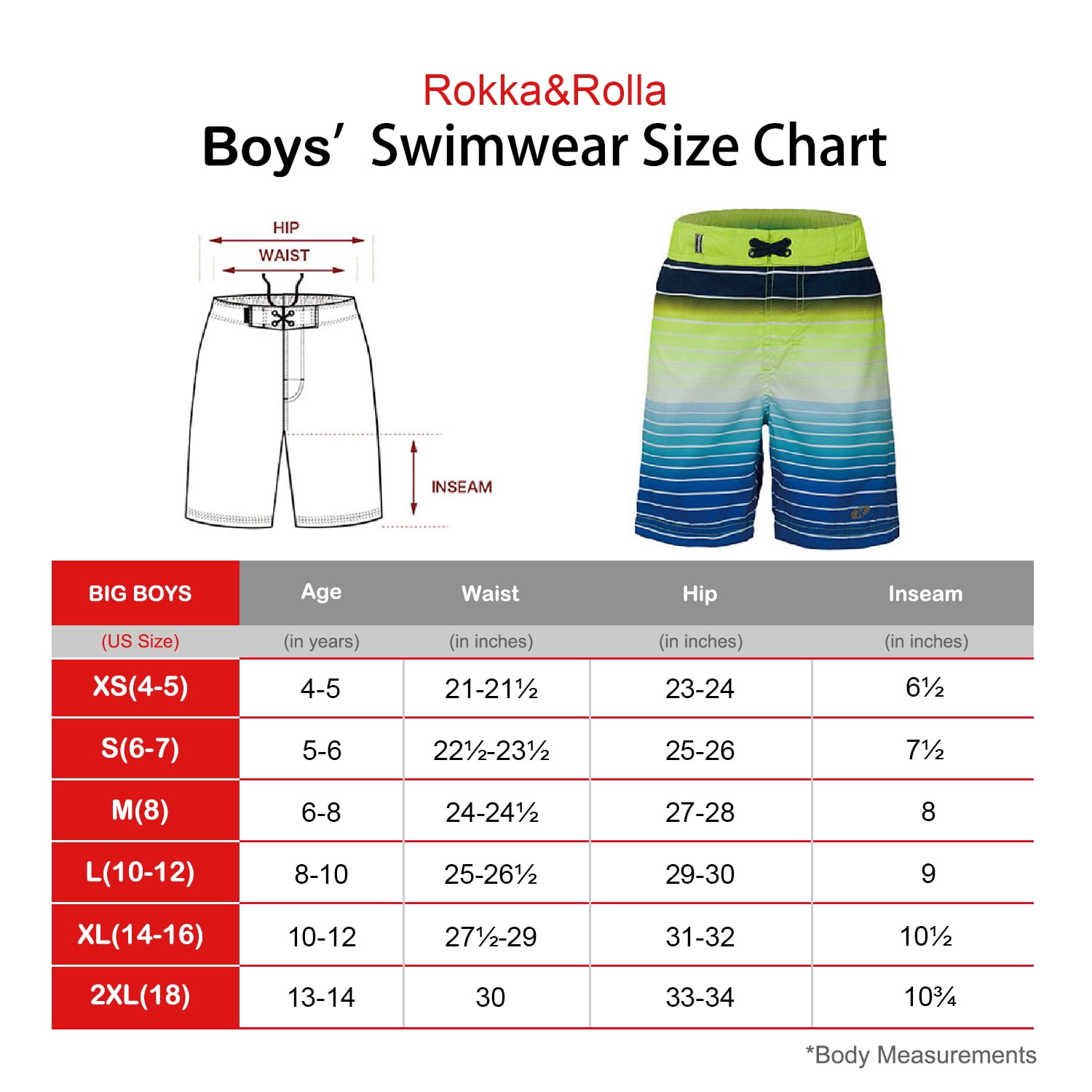 Rokka&Rolla Boys’ Stretch Swim Trunks with Mesh Lining, UPF 50+ Sizes 4-18