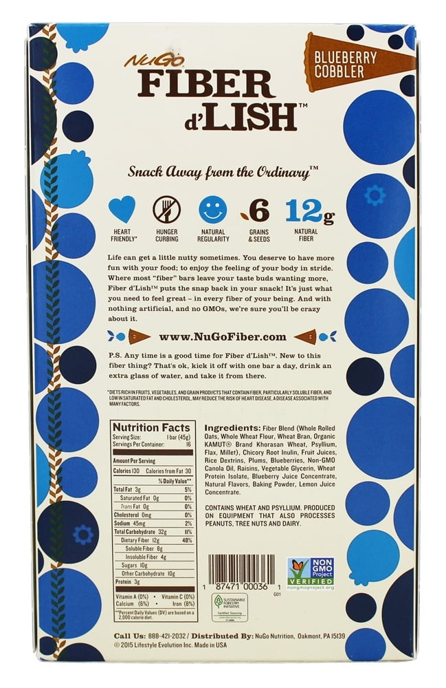 NuGo Fiber d’Lish Snack Bar, Blueberry Cobbler, 1.6 Oz