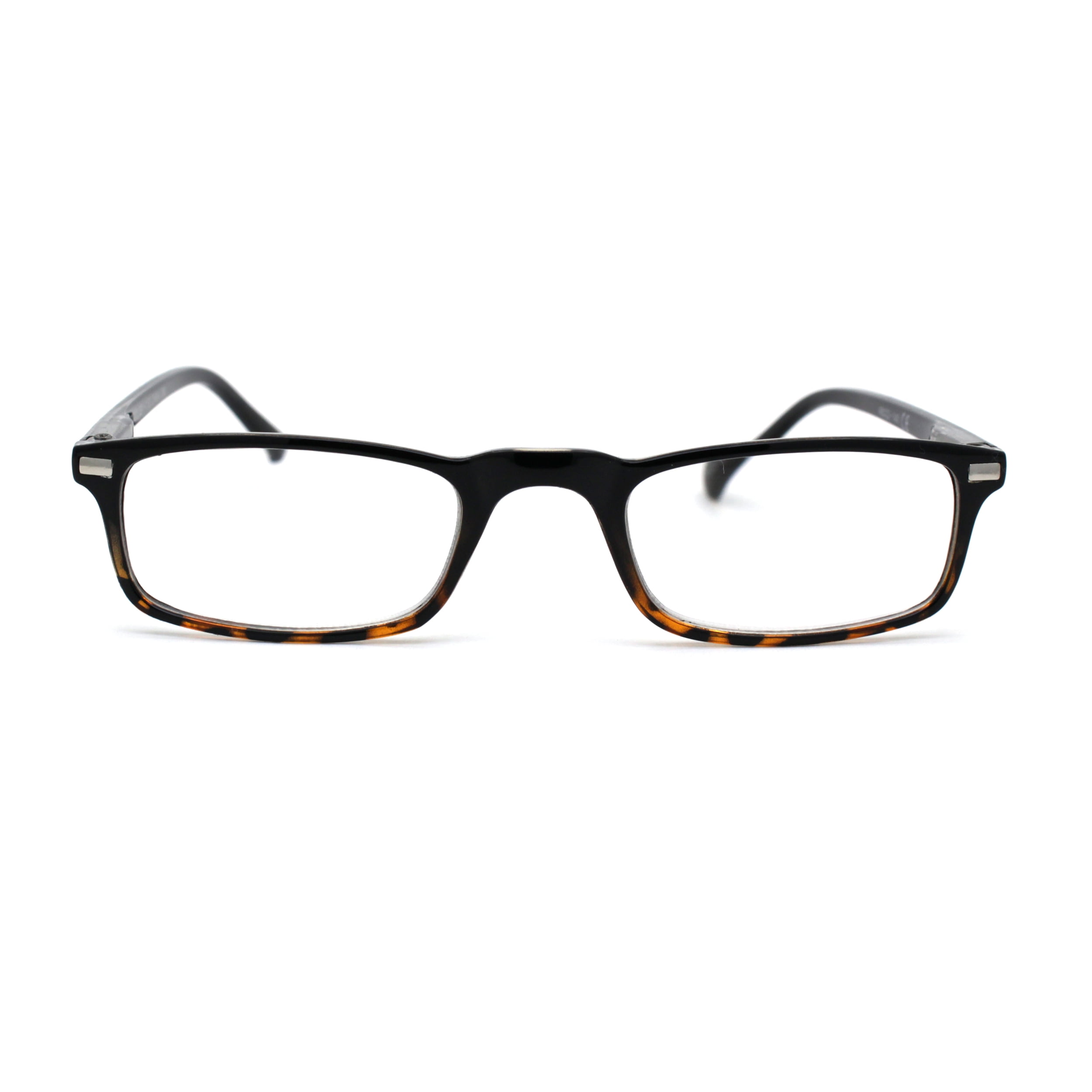 Mens Spring Hinge 90s Narrow Rectangle Plastic Powered Reading Glasses Black Tortoise +1.75