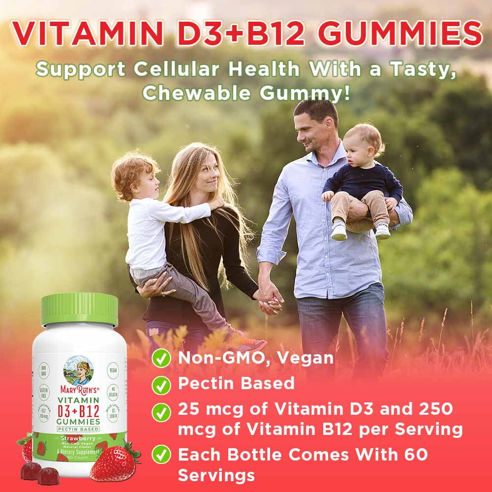 Vitamin D3 + Vitamin B12 | 2 Month Supply | Vitamin D & B12 Vitamin Supplements for Adults & Kids | Supports Bone Health | Promotes Energy Boost | Vegan | Non-GMO | Gluten Free | 60 Servings