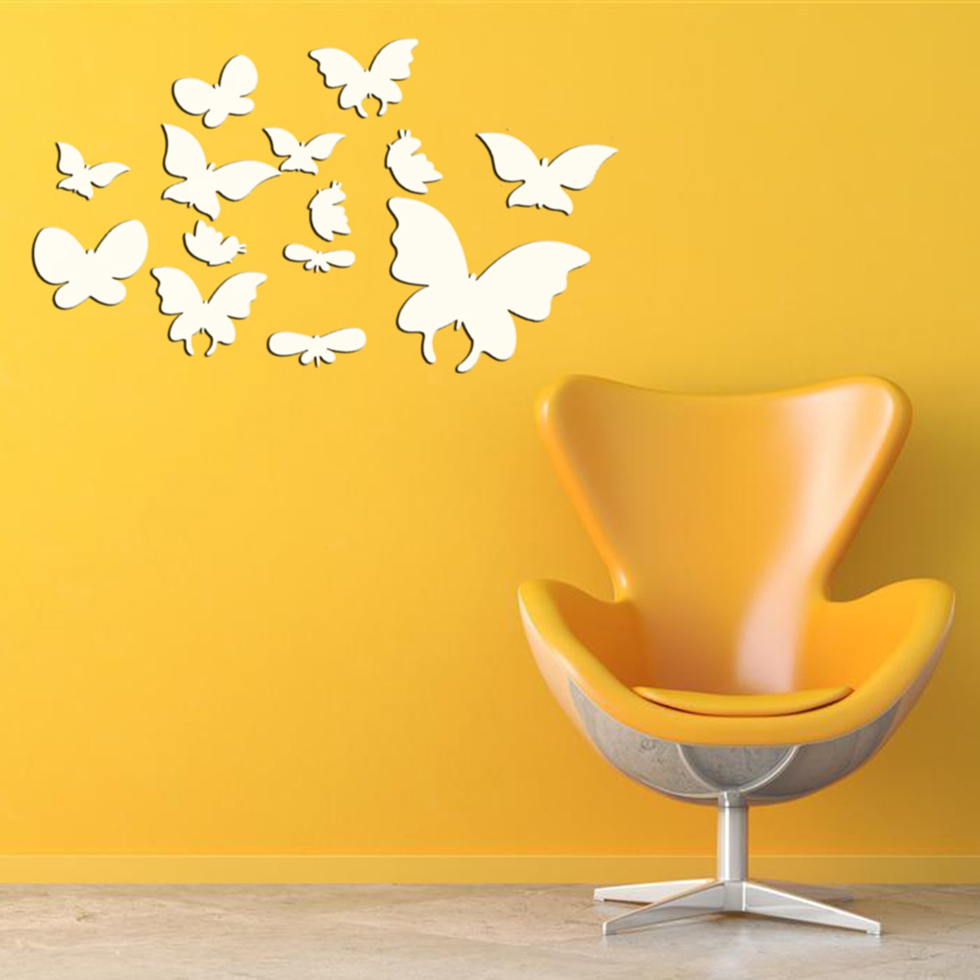 Uxcell Butterfly Mirror Surface 3D Wall Decor Sticker Acrylic Plastic 14 Pack