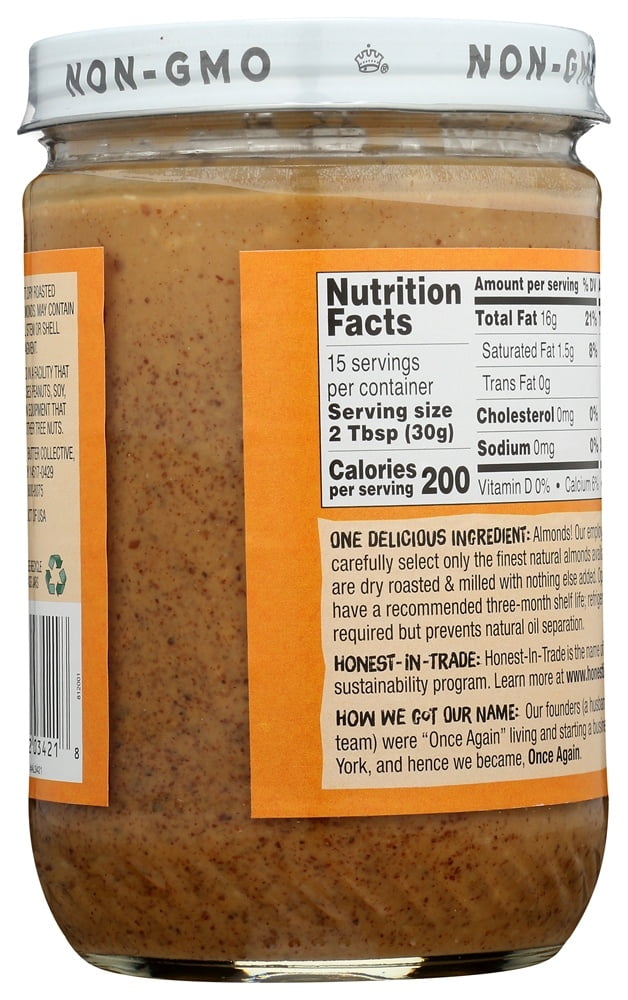Once Again Almond Butter – Natural – Crunchy – Salt Free – 16 oz – Single