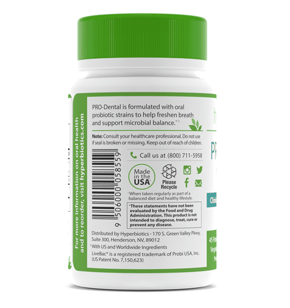 Hyperbiotics PRO-Dental w/ 4 Targeted Strains & Chelated Zinc – Clinically Studied for Oral Health – Natural Mint Flavor – 45 LiveBac Chewable Tablets