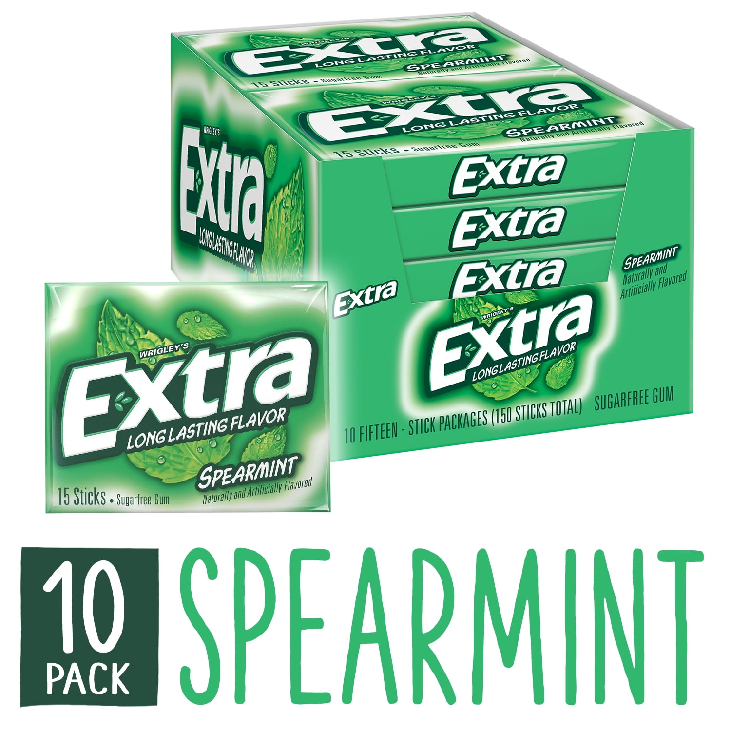 EXTRA Gum Spearmint Chewing Gum, 15 Piece Packs, 10 Count