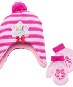 Disney Princess Toddler Girls Pink Striped Trapper Peruvian Hat & Mittens Set